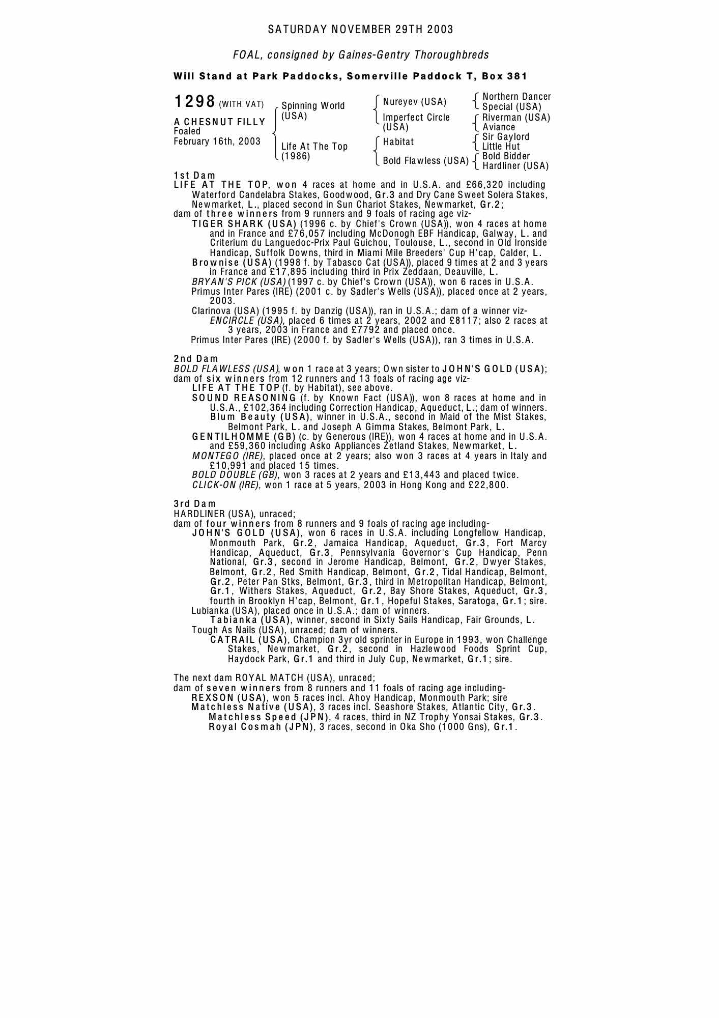 December Foal Sale 2001 lot 795 C. by Sadler's Wells (USA) , John Troy, Agent=>McKeever St Lawrence 85,000 gns