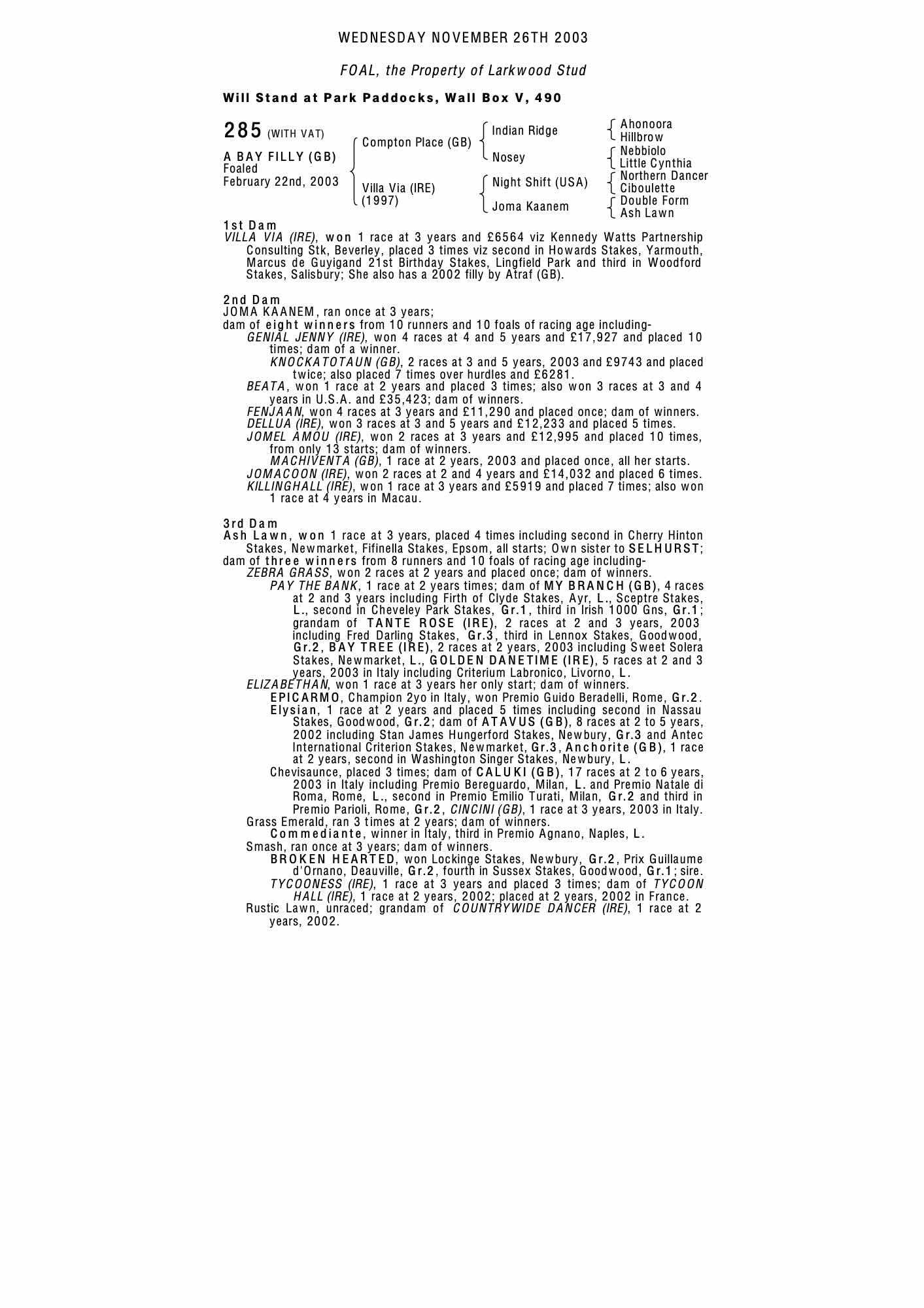 October Yearling Sale, Book 2 2003 lot 1384 F. by Atraf (GB) 2002, Larkwood Stud=>Anna Dimou 800 gns