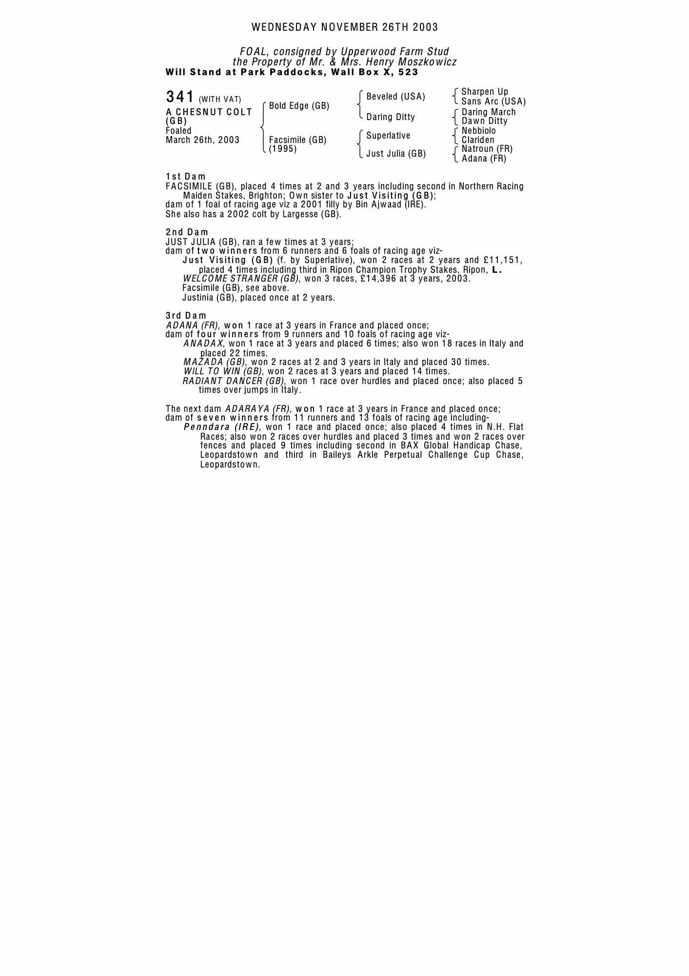 October Yearling Sale, Book 2 2003 lot 1577 C. by Largesse (GB) 2002, Herringswell Bloodstock Centre=>Vendor 800 gns