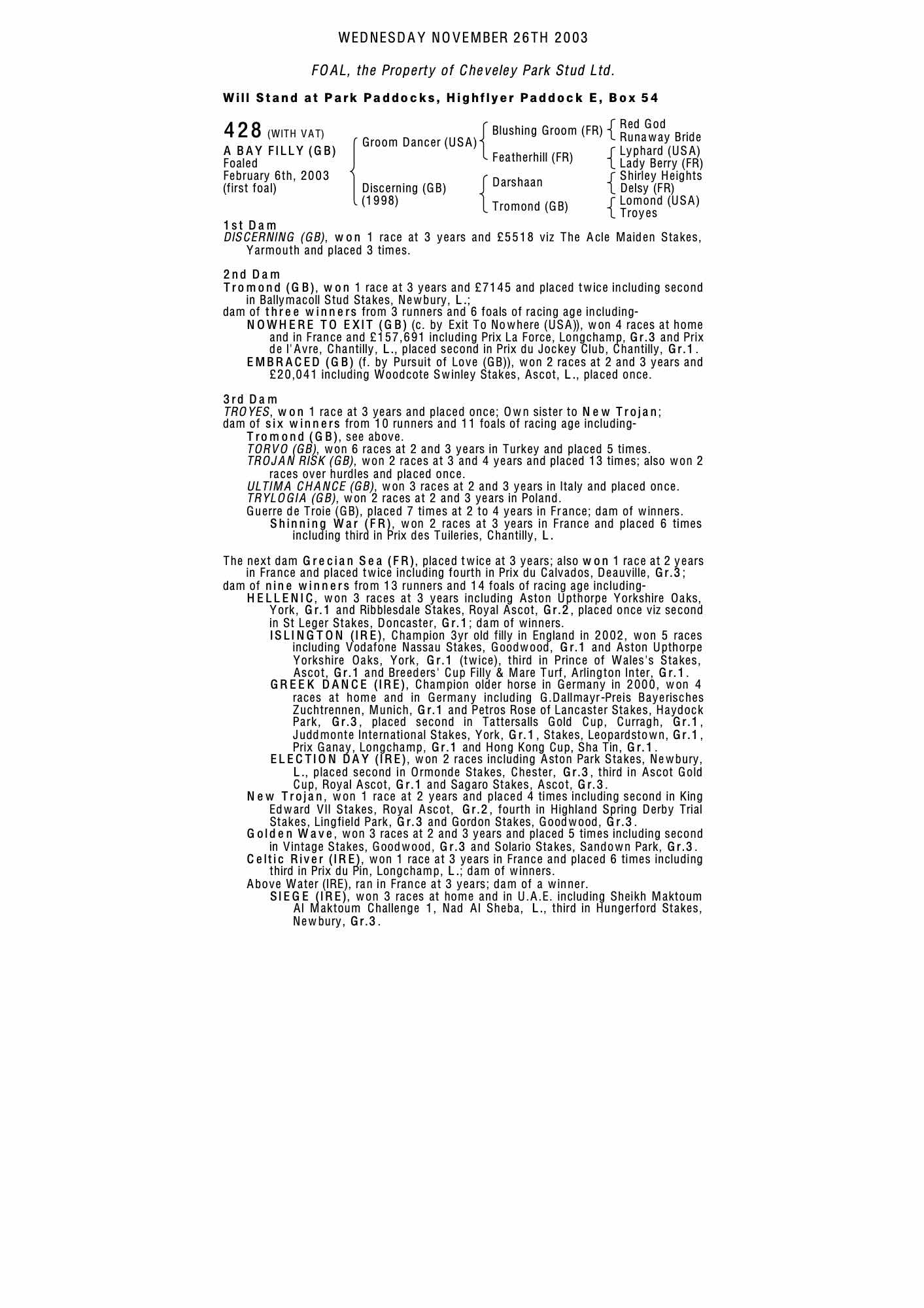 December Mare Sale 2012 lot 2026 Discern (GB) (M. by Medicean (GB)), Cheveley Park Stud Ltd.=>Lot Not Sold 62,000 gns