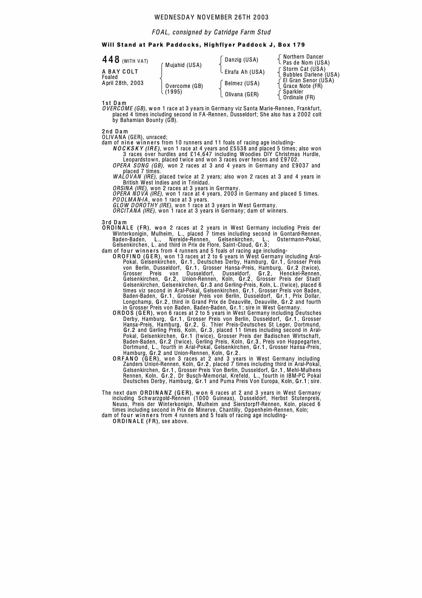 Consignor: Catridge Farm Stud