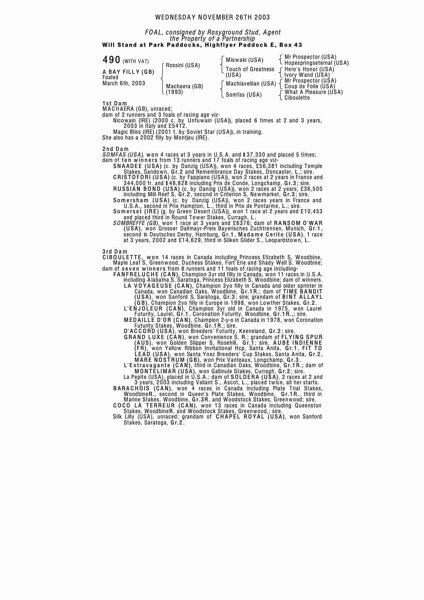 Breeze Up Sale 2003 lot 103 F. by Soviet Star (USA) 2001, Mocklershill Stables, Ireland=>Bobby O'Ryan 60,000 gns