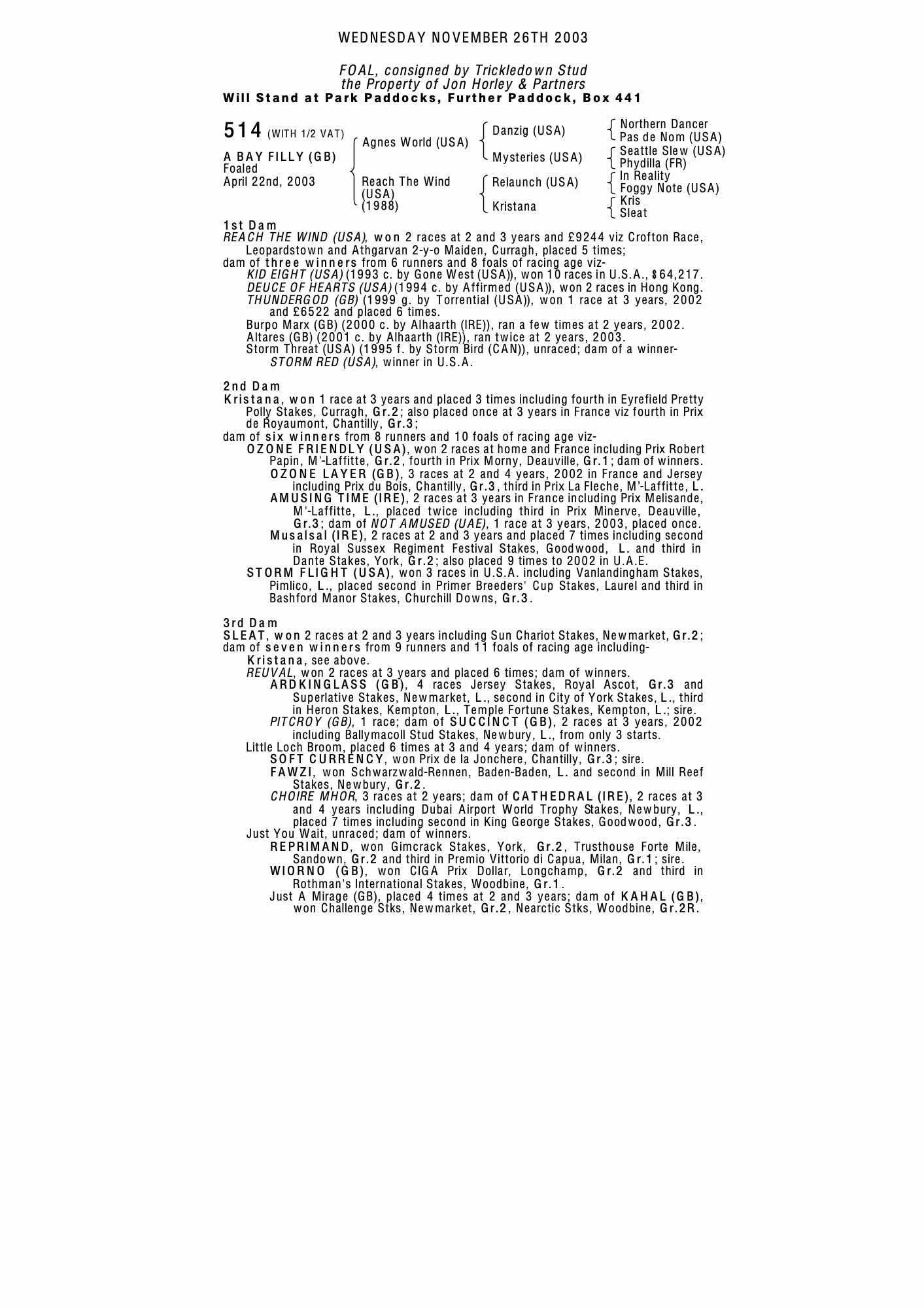 December Yearling Sale 2004 lot 69, Furnace Mill Stud=>Vendor 19,000 gns