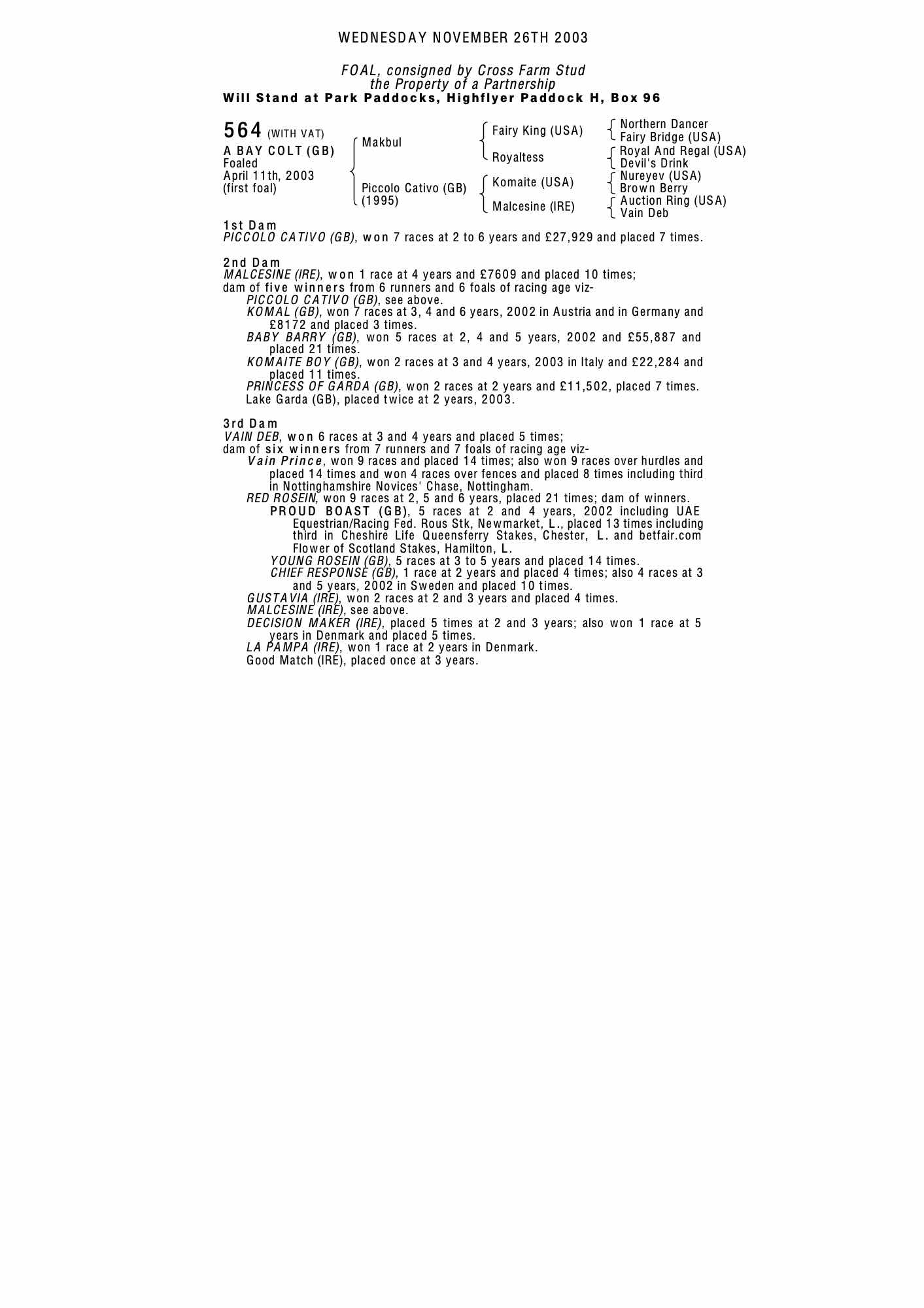 Consignor: Cross Farm Stud