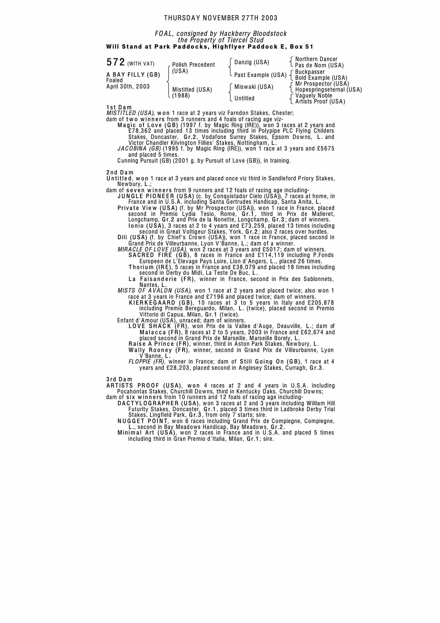 October Yearling Sale 2000 lot 989 F. by Vettori (IRE) , Glidawn Stud, Ireland=>Forthright 4,500 gns