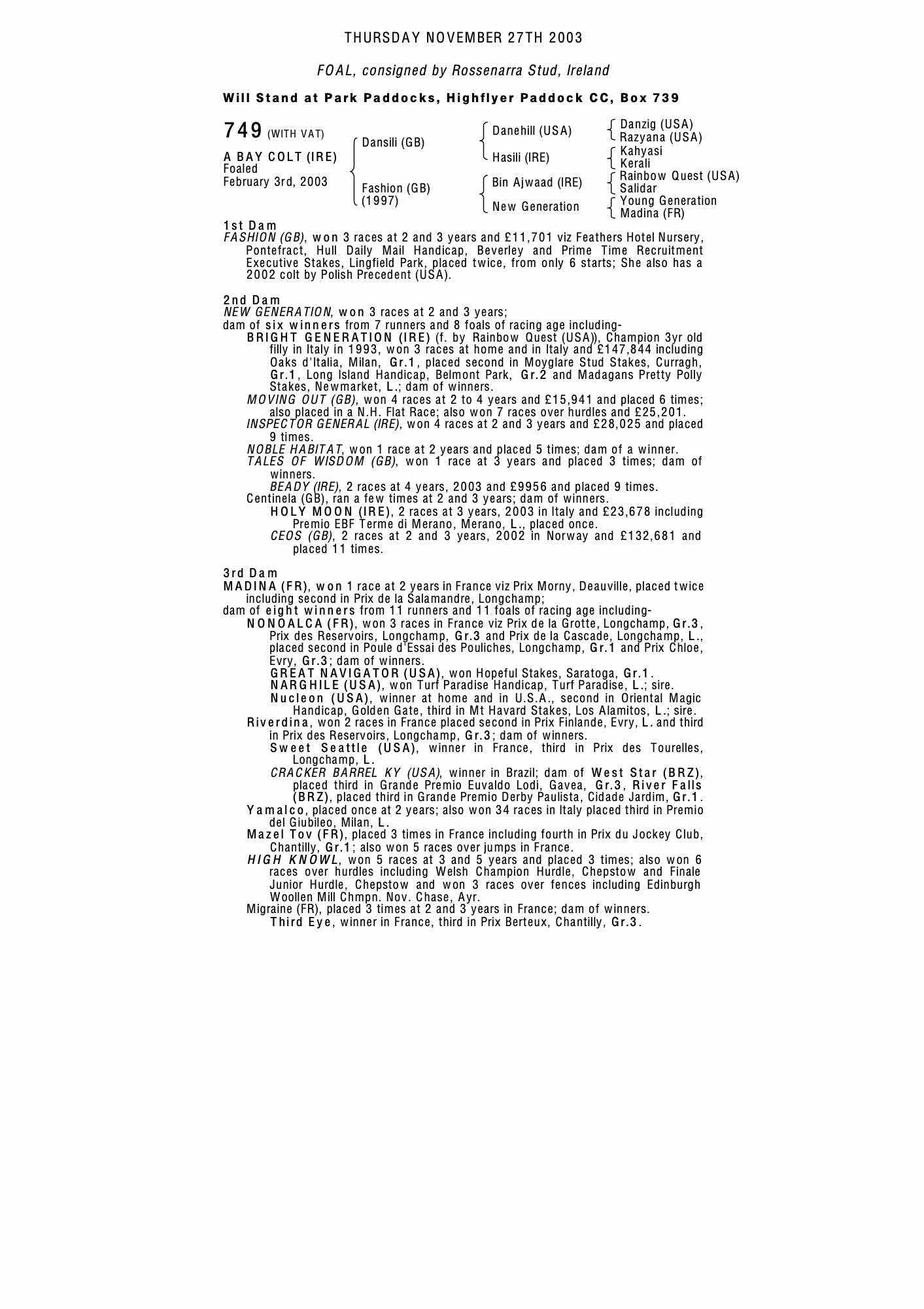 Consignor: Rossenarra Stud, Ireland
