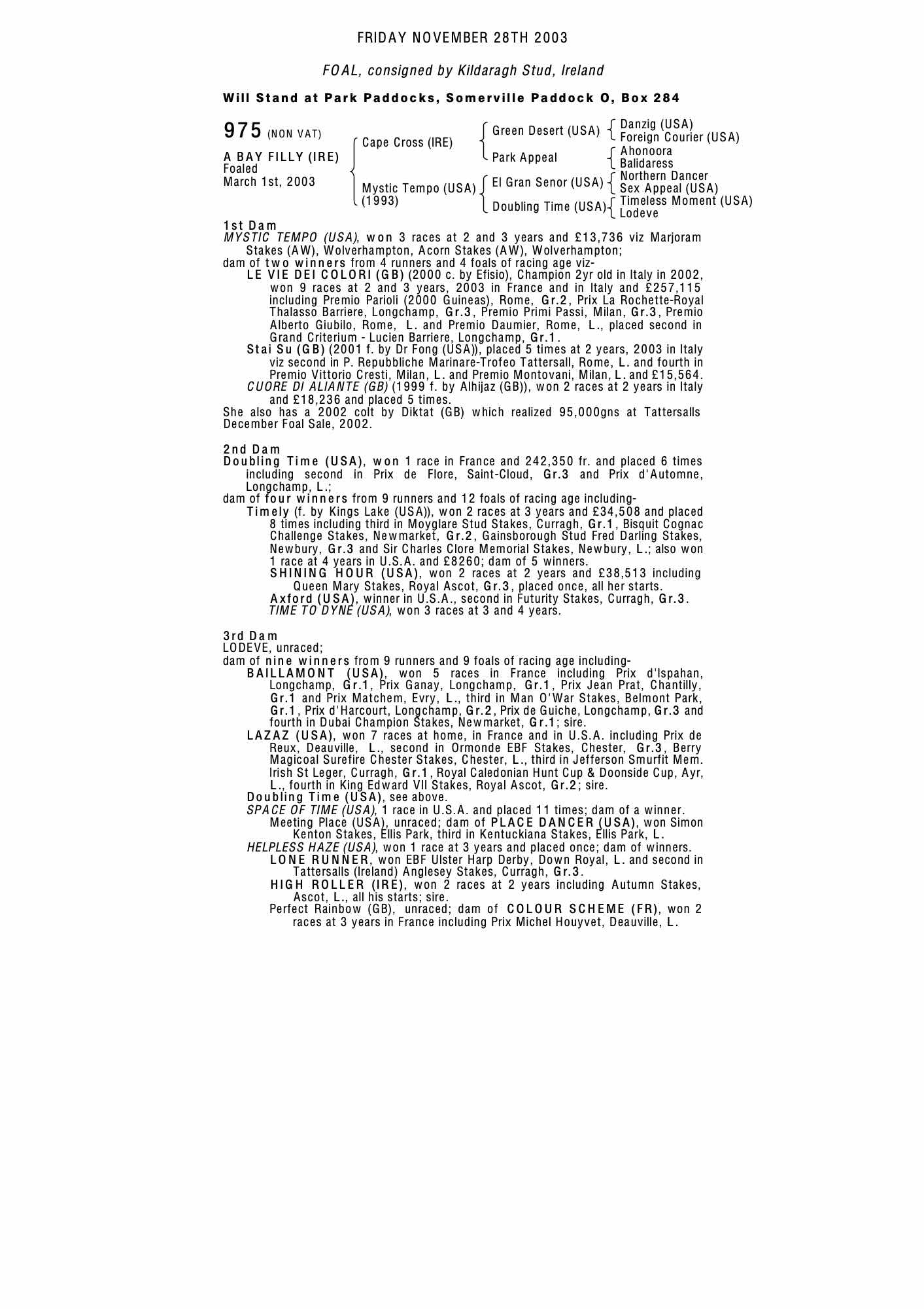 December Mare Sale 2003 lot 1867 Cuore Di Aliante (GB) (M. by Alhijaz (GB)), Kildaragh Stud, Ireland=>The National Stud 68,000 gns