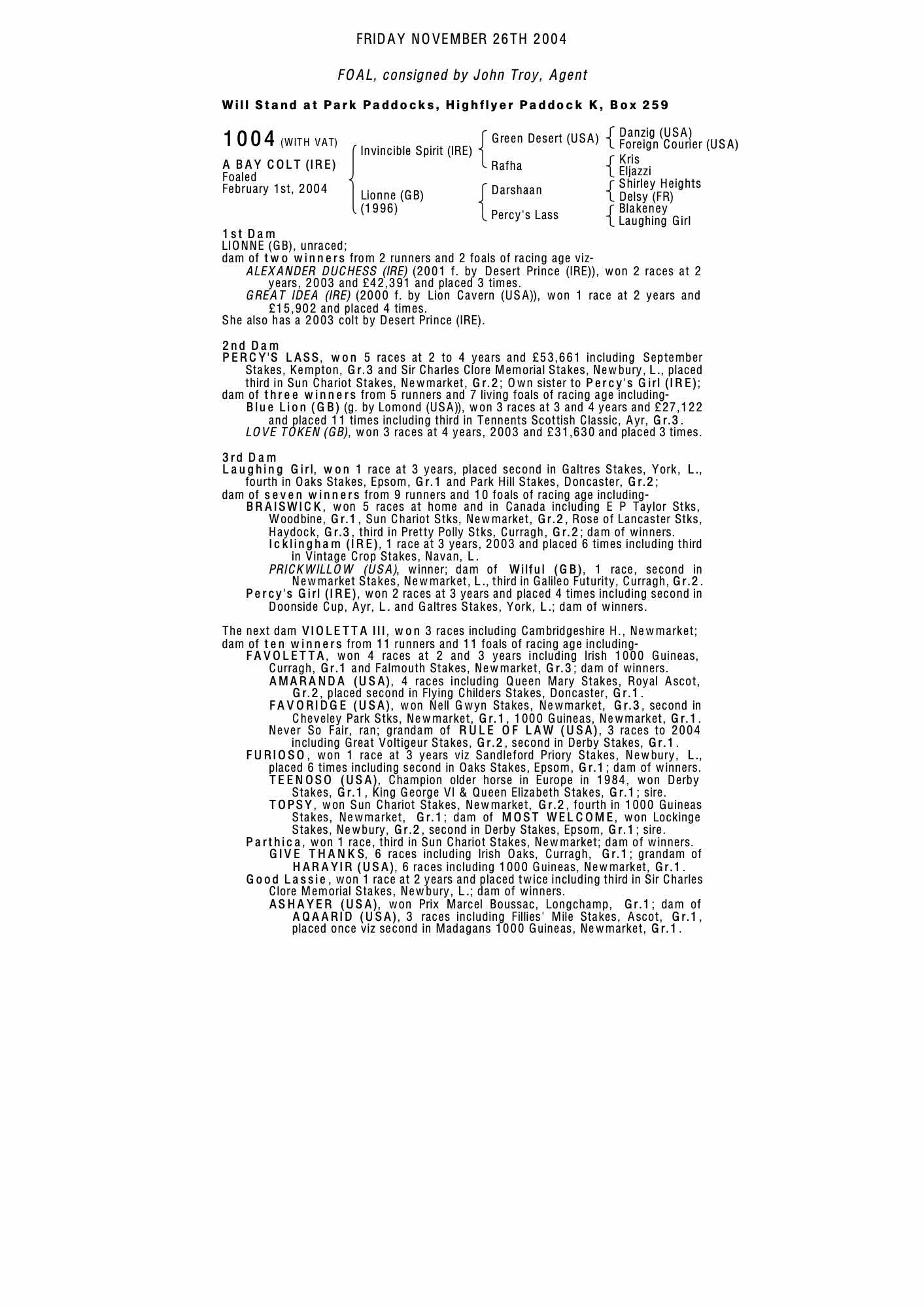 October Yearling Sale, Book 1 2006 lot 255 F. 2005, Hawthorn Villa Stud, Ireland=>Shadwell Estate Company 230,000 gns