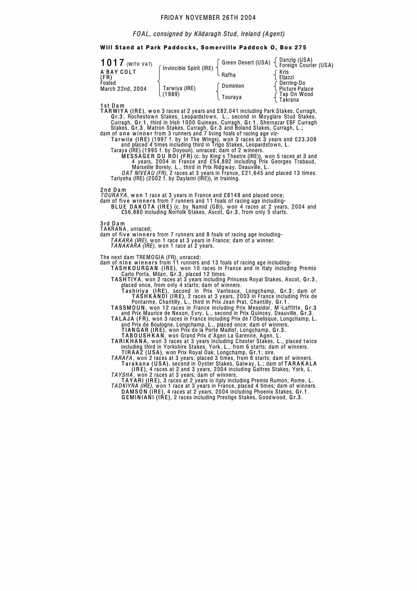 Consignor: Kildaragh Stud, Ireland (Agent)