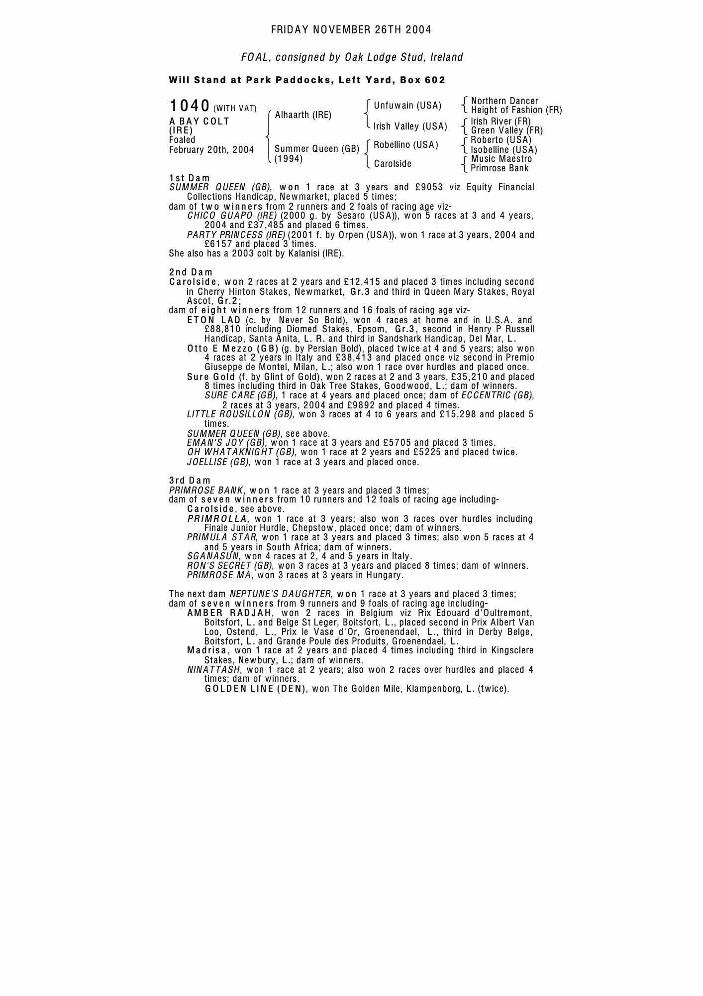 October Yearling Sale, Book 1 2004 lot 603 C. by Kalanisi (IRE) 2003, Tally-Ho Stud, Ireland=>Vendor 20,000 gns