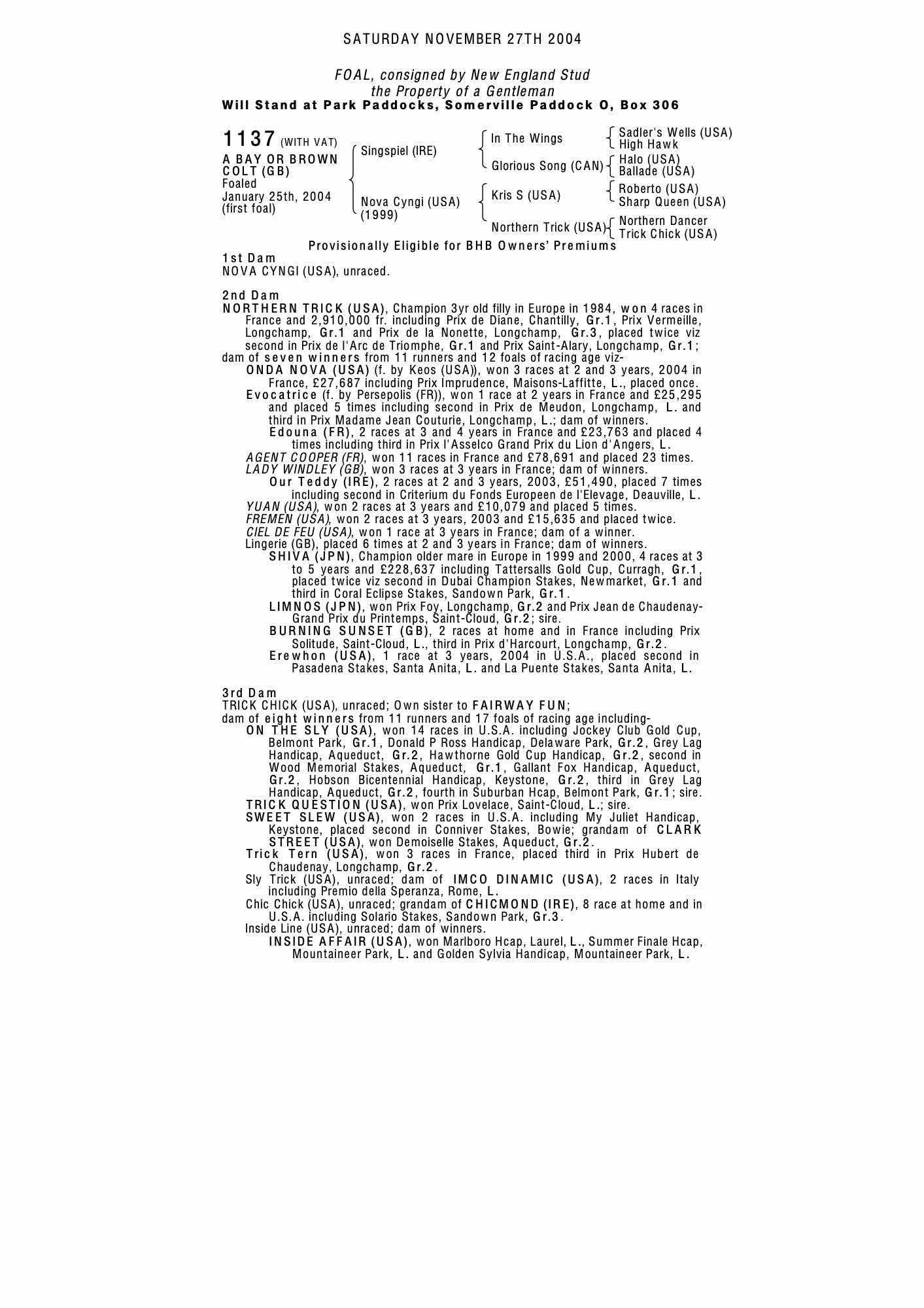 December Foal Sale 2010 lot 934 C. by Shamardal (USA) 2010, Airlie Stud, Ireland=>Yeomanstown Stud 33,000 gns