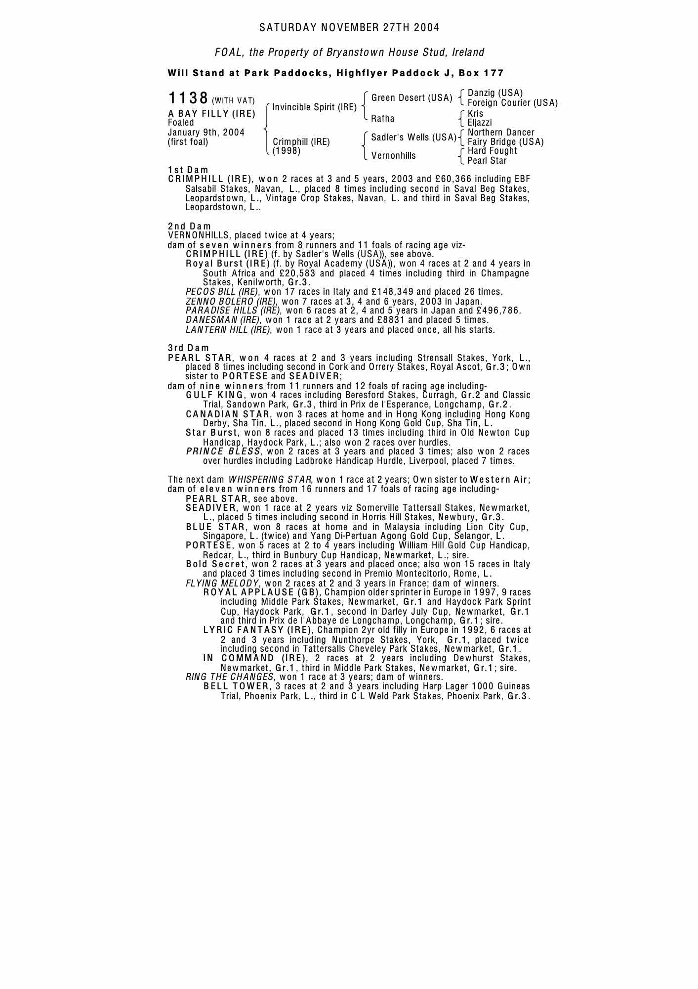 Consignor: Bryanstown House Stud, Ireland