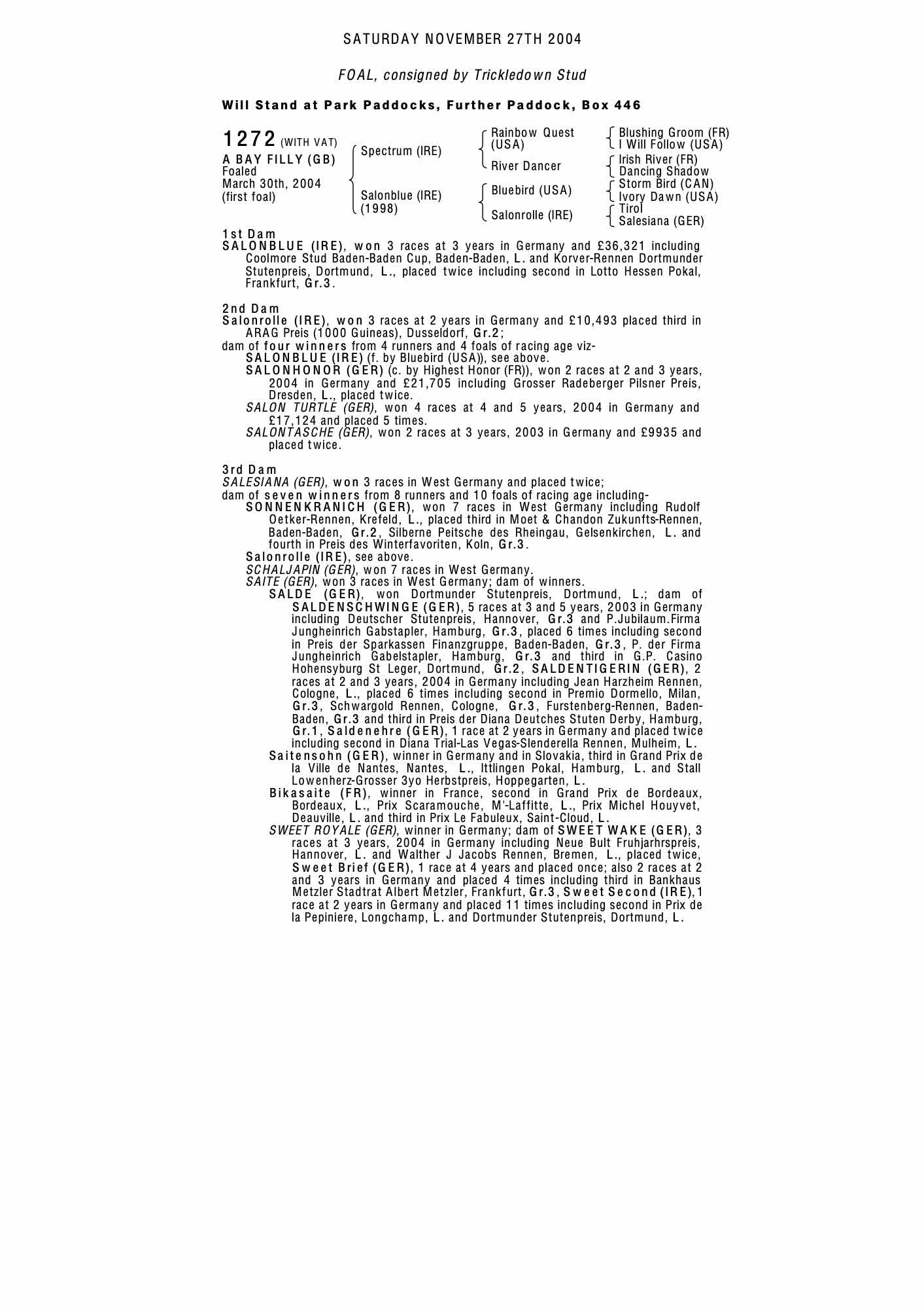 December Foal Sale 2007 lot 1482 F. by Monsun (GER) 2007, Castletown Stud, Ireland=>Sc Blueberry 80,000 gns
