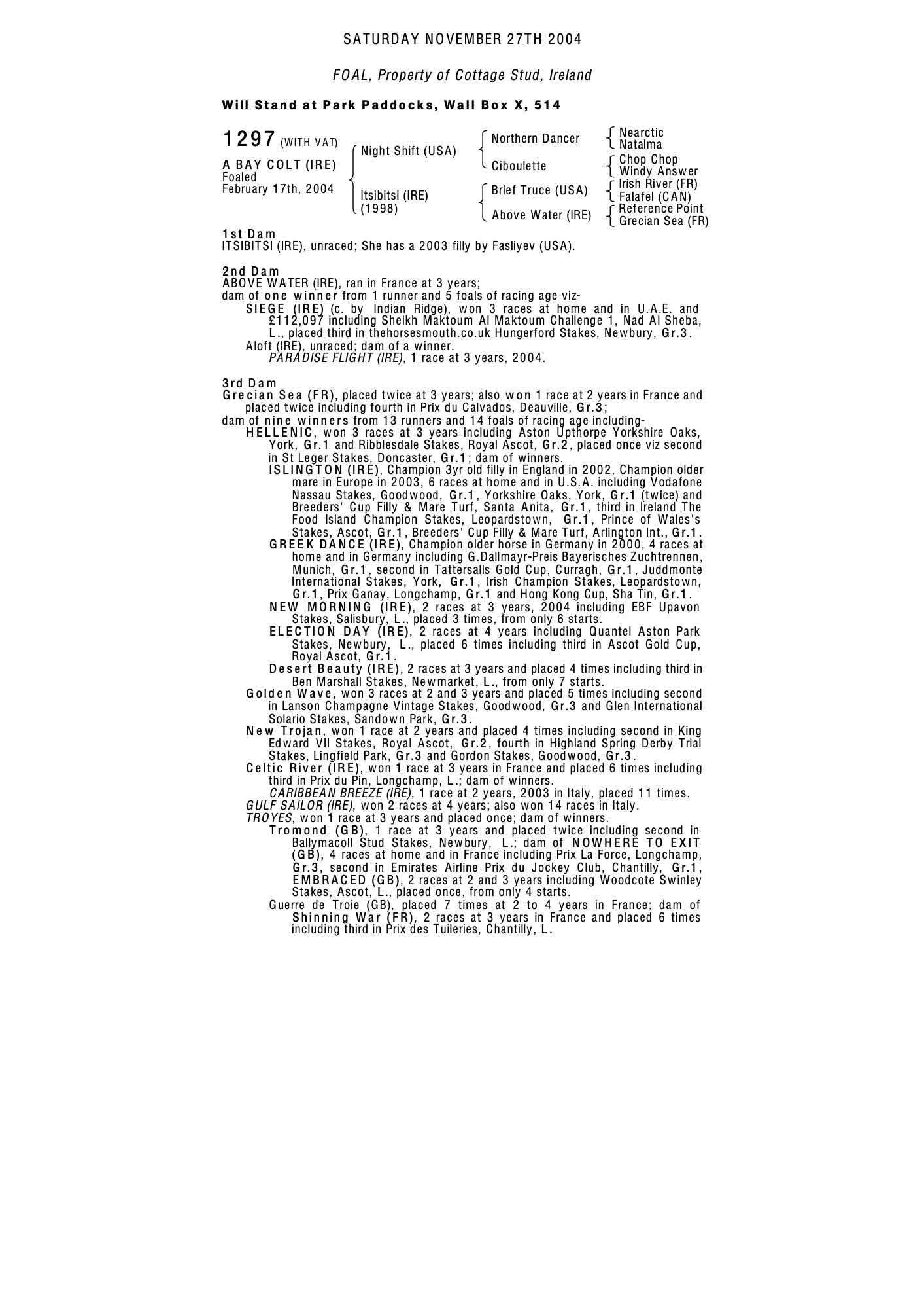 December Foal Sale 2003 lot 1337 F. by Fasliyev (USA) 2003, Cottage Stud, Ireland=>Vendor 25,000 gns