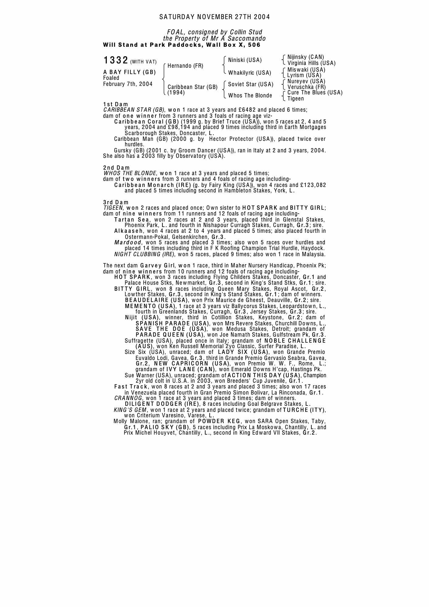December Foal Sale 2003 lot 478 F. by Observatory (USA) 2003, Genesis Green Stud=>Gill Richardson 20,000 gns