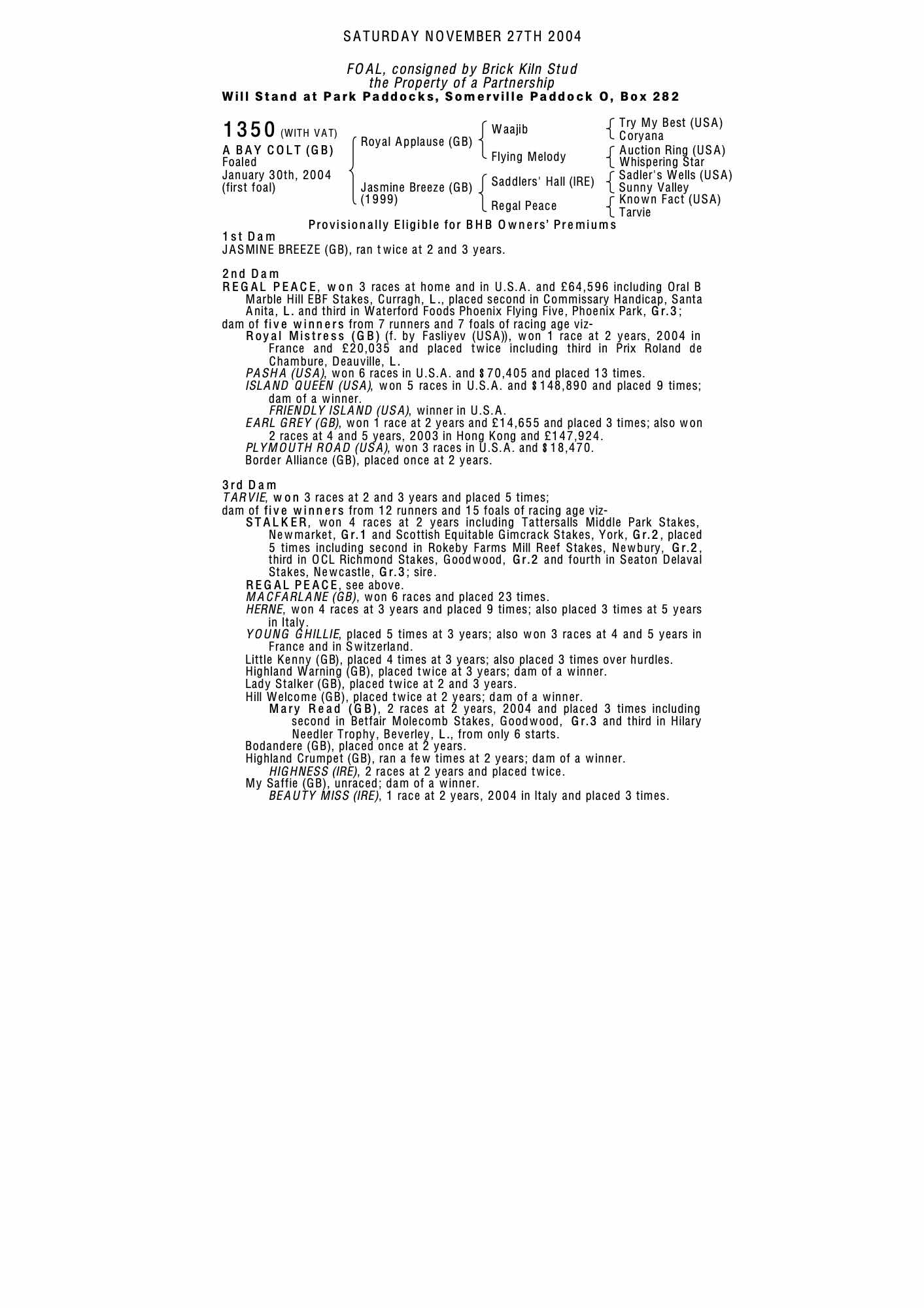 October Yearling Sale, Book 1 2005 lot 319, Whitehall Stud, Ireland=>Lot Not Sold 48,000 gns