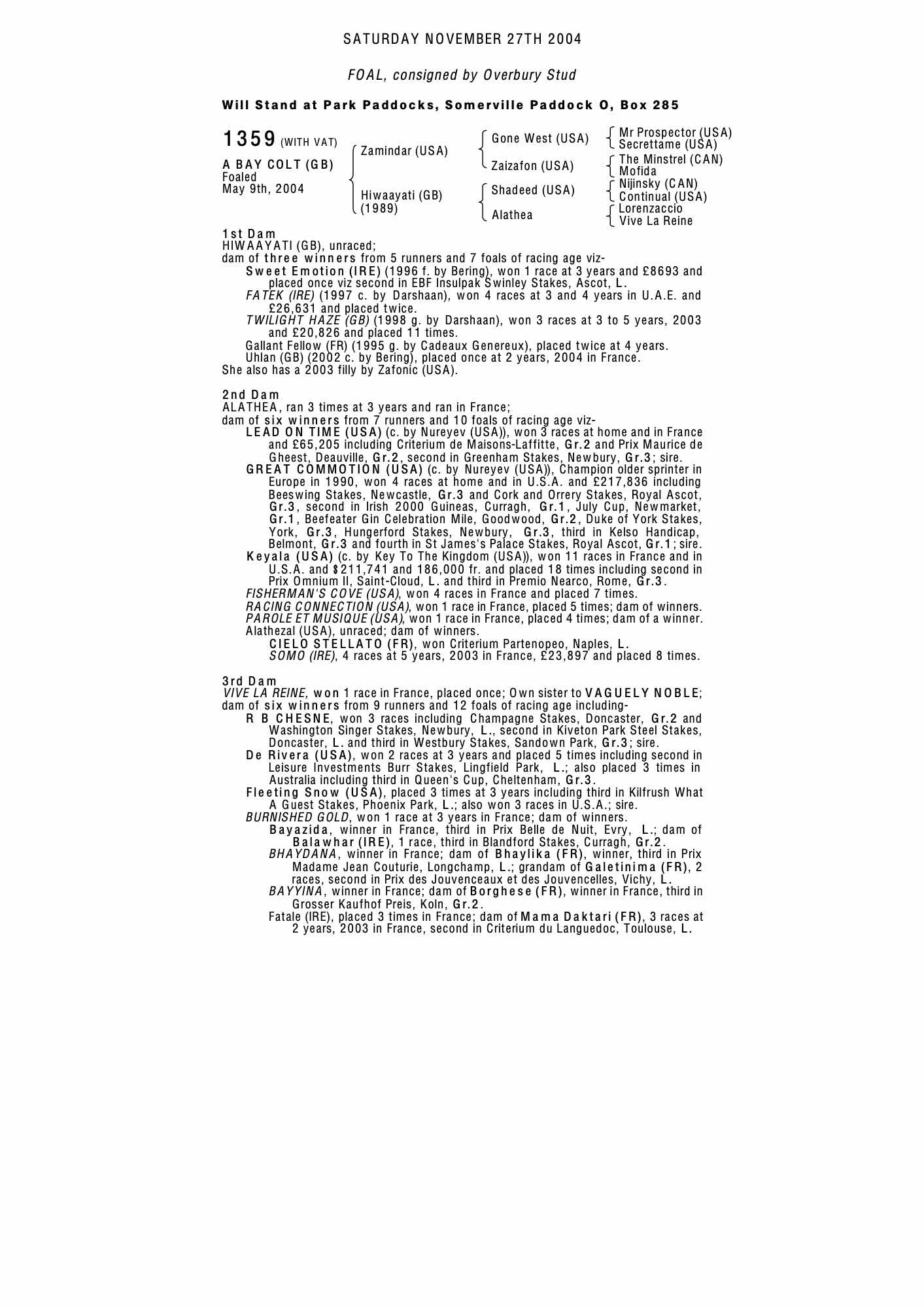 July Sale 2003 lot 104 Twilight Haze (GB) (G. by Darshaan), Sandybrow Stables=>Lot Not Sold 6,800 gns
