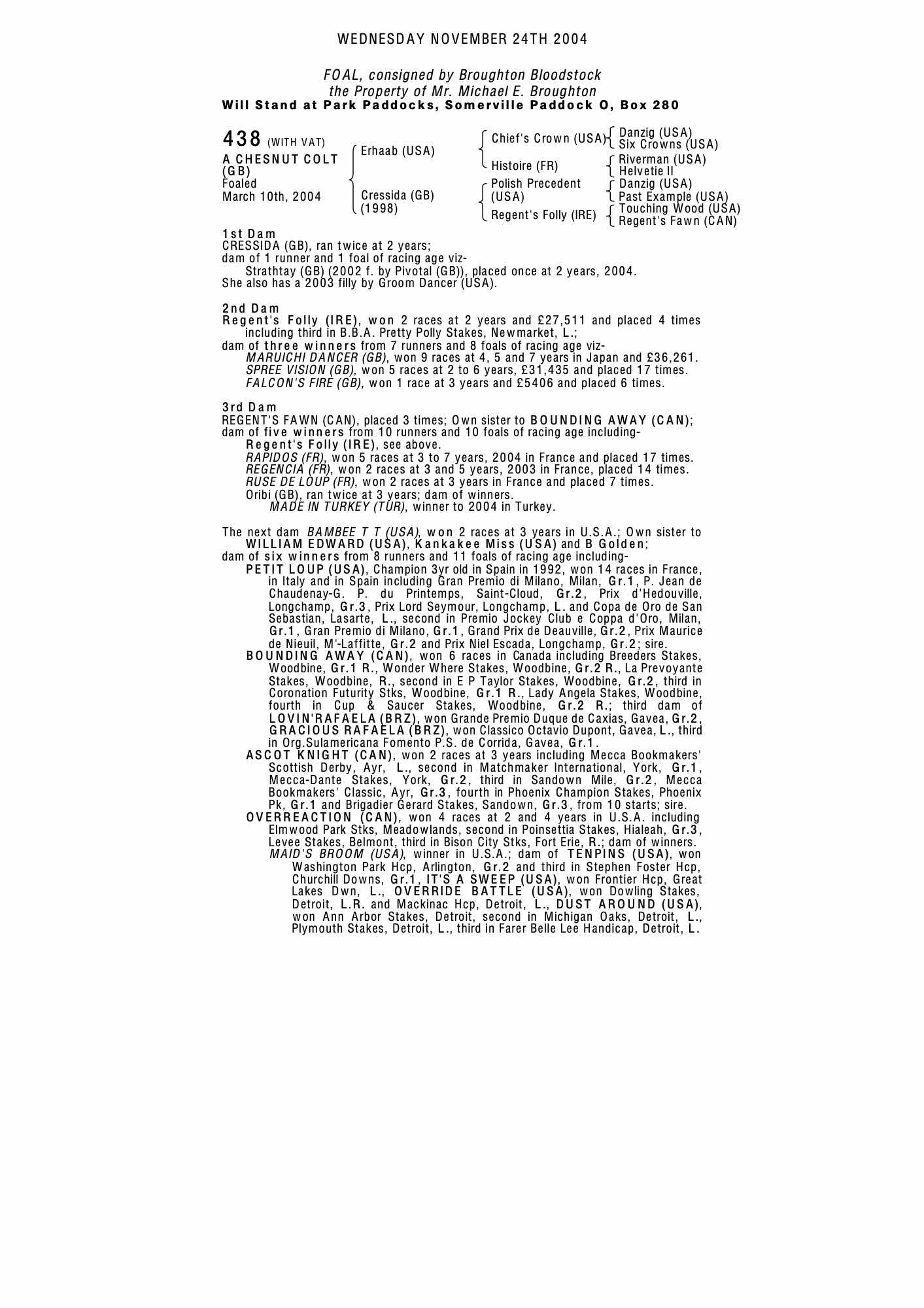 October Yearling Sale, Book 2 2004 lot 1460 F. by Groom Dancer (USA) 2003, Broughton Bloodstock=>David Redvers Bloodstock 3,000 gns
