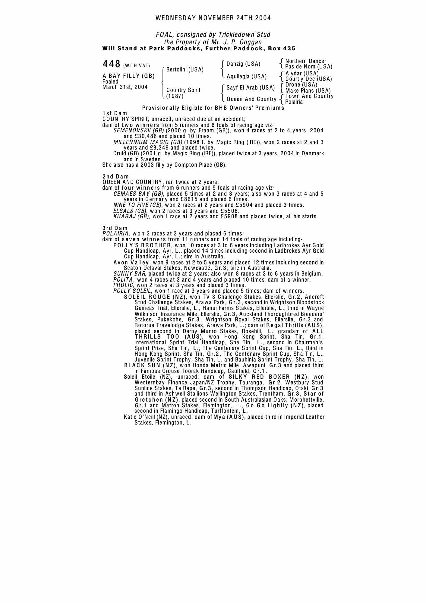 October Yearling Sale, Book 2 2004 lot 1457 F. by Compton Place (GB) 2003, Trickledown Stud=>Federico Barberini, Agent 10,000 gns