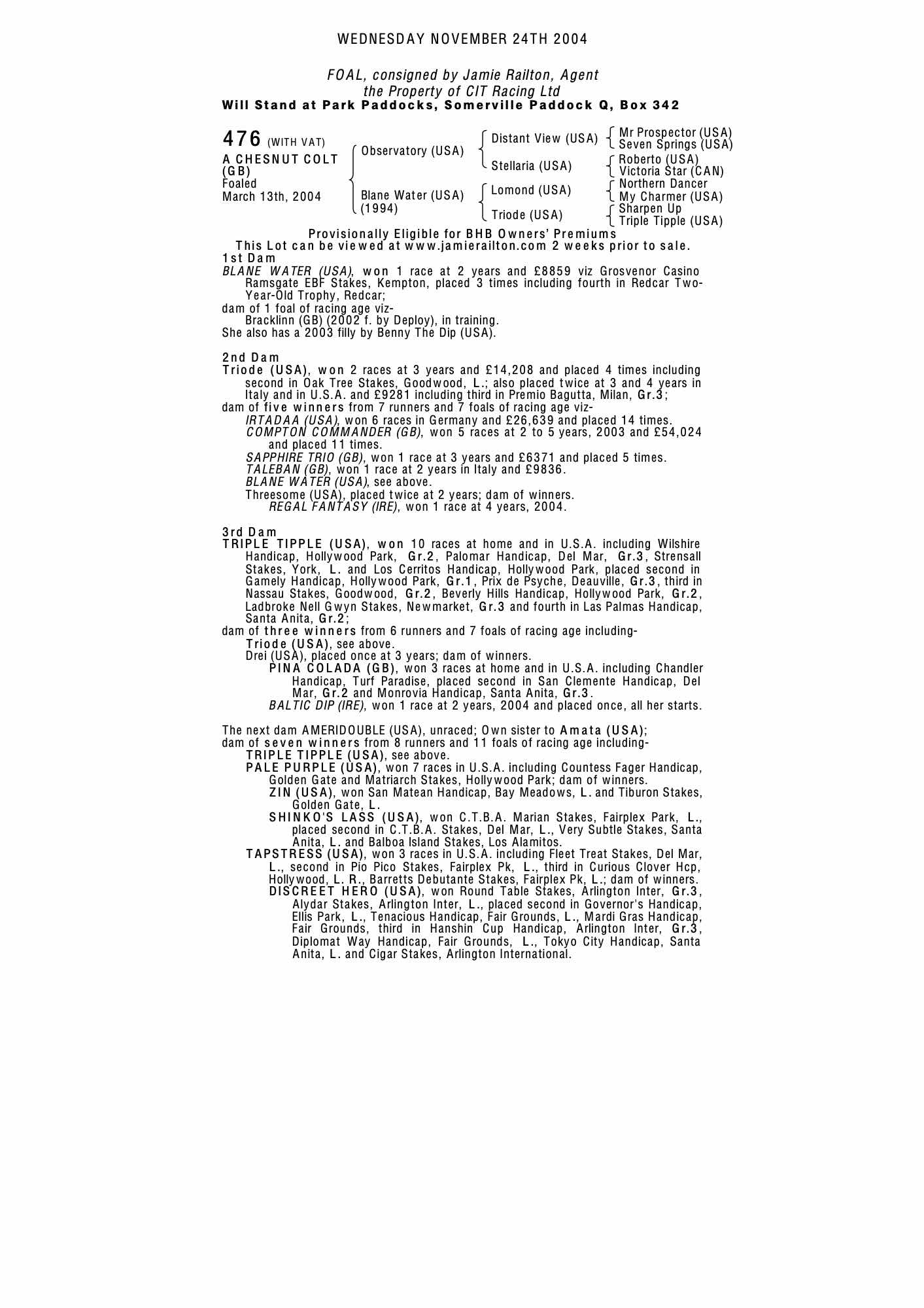 July Sale 2006 lot 237, Grove Farm Stud, Newmarket=>Vendor 1,000 gns
