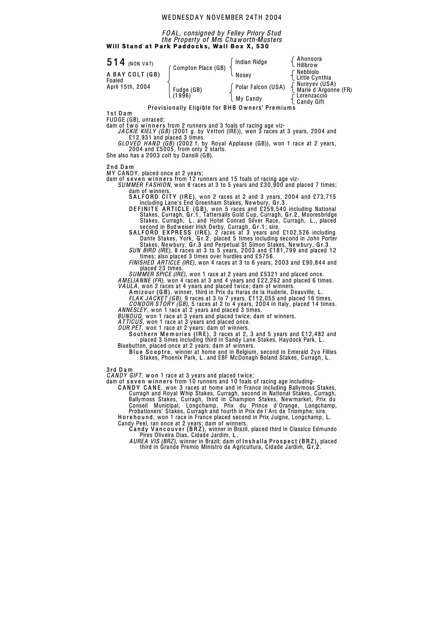 December Foal Sale 2003 lot 530 C. by Dansili (GB) 2003, Felley Priory Stud=>Peter Mooney 26,000 gns