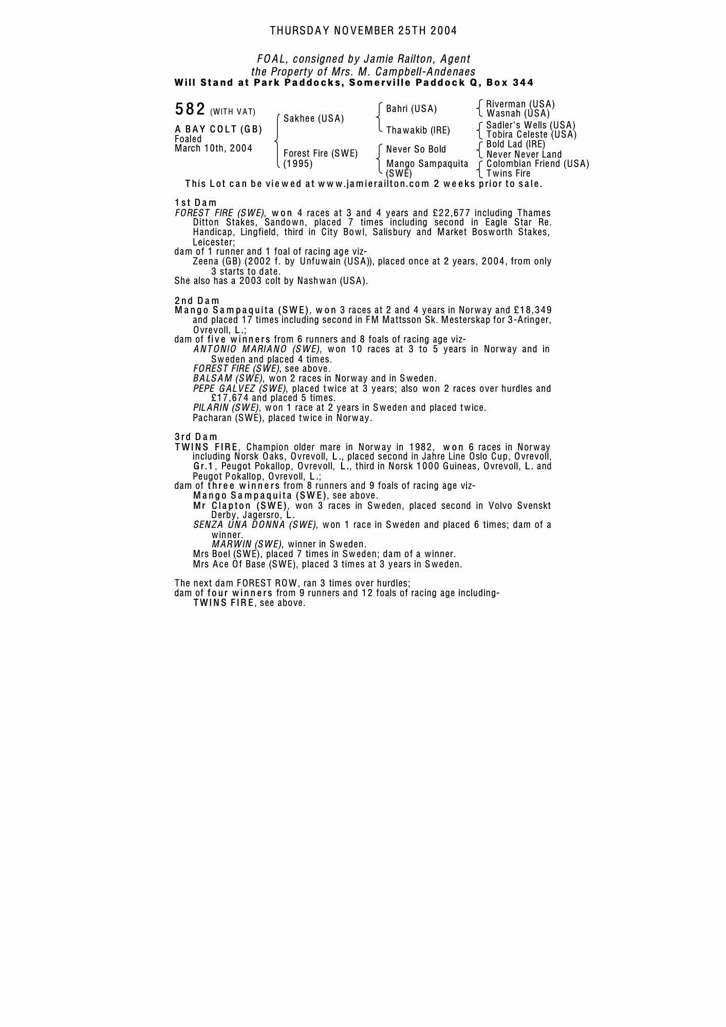 October Yearling Sale, Book 2 2004 lot 1727 C. by Nashwan (USA) 2003, Jamie Railton, Agent=>D Markovic 1,500 gns