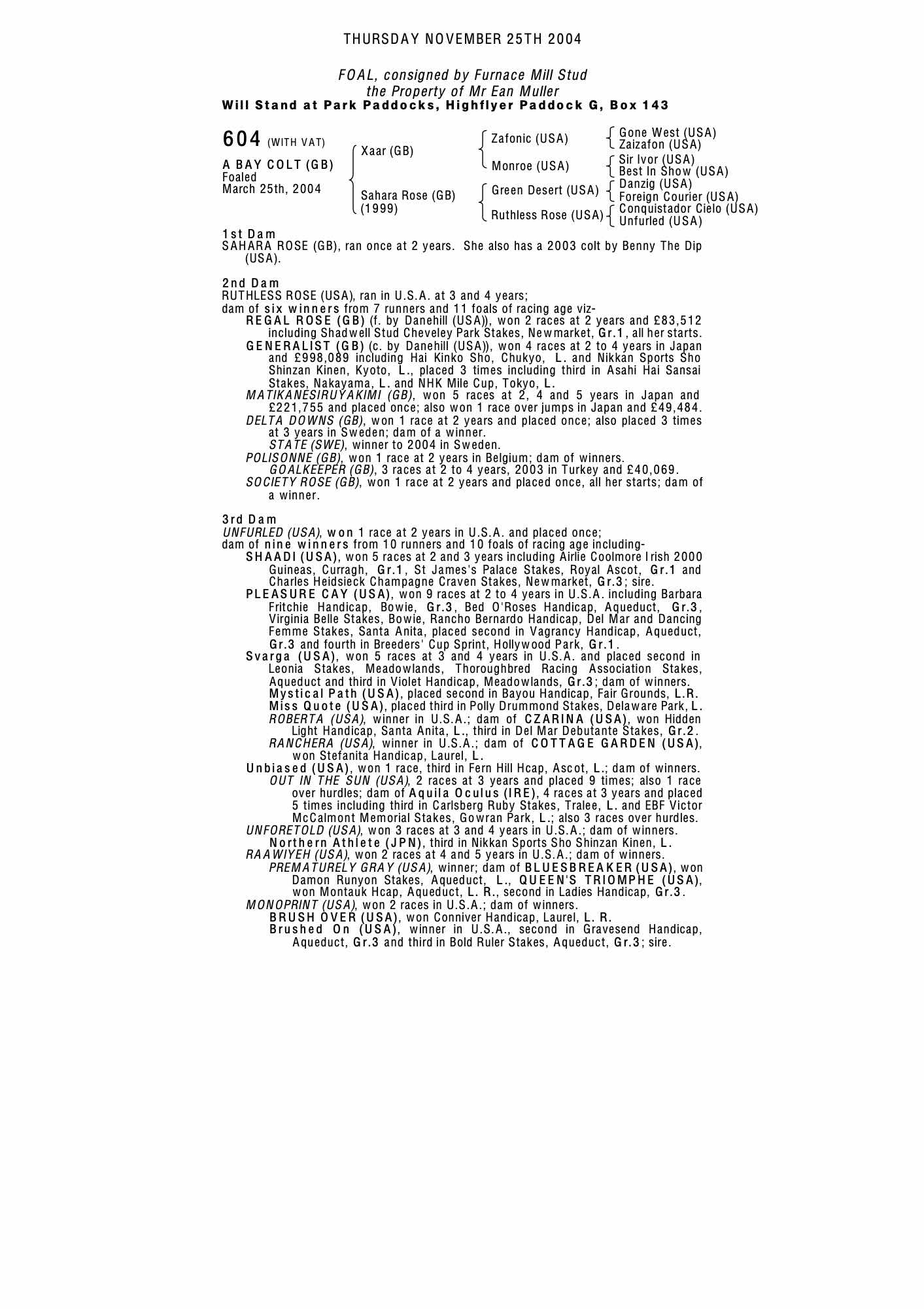 February Sale 2010 lot 32 Oriental Rose (GB) (F. by Dr Fong (USA)), Dungehill Farm=>Lot Not Sold 1,800 gns