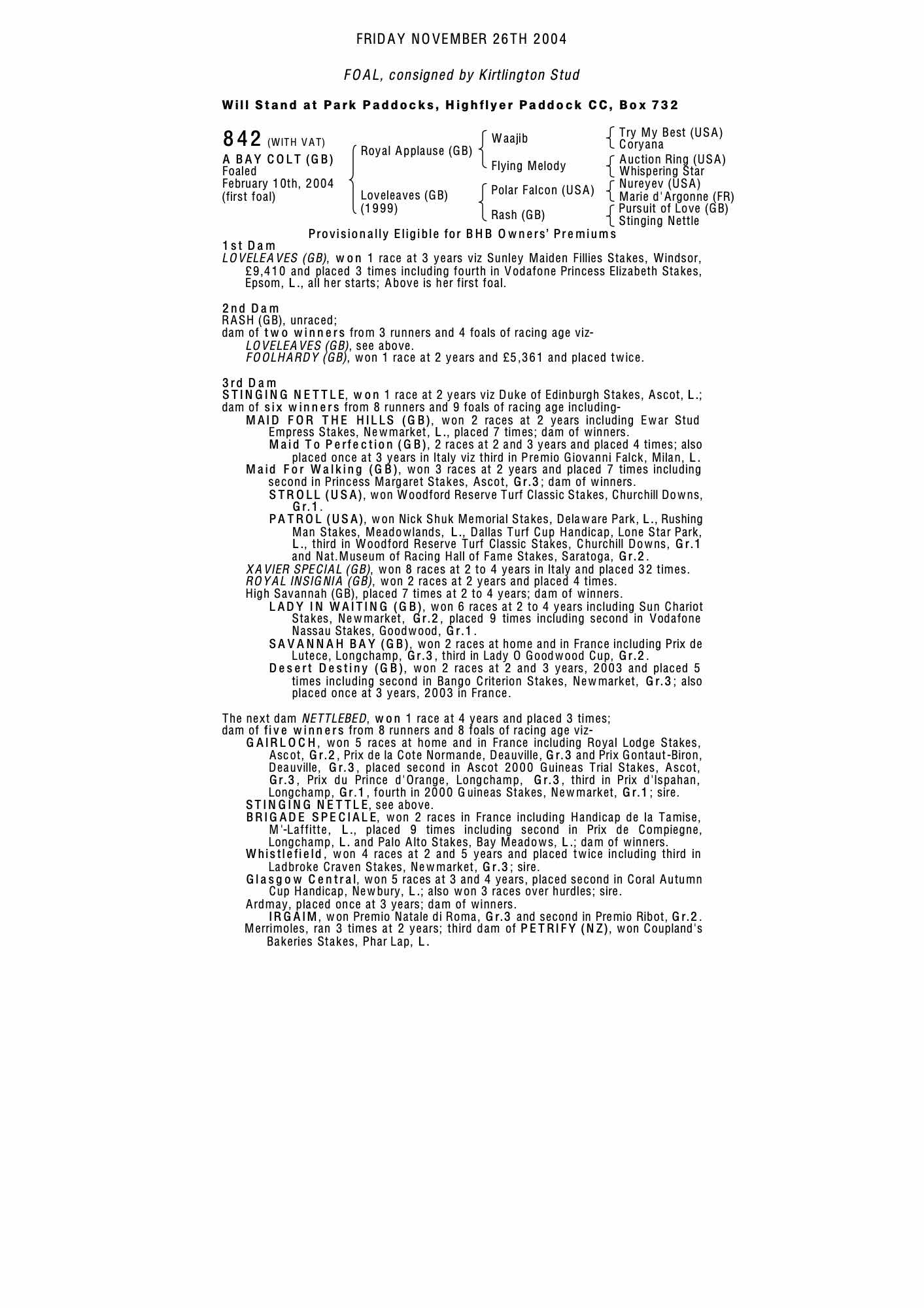 Consignor: Kirtlington Stud