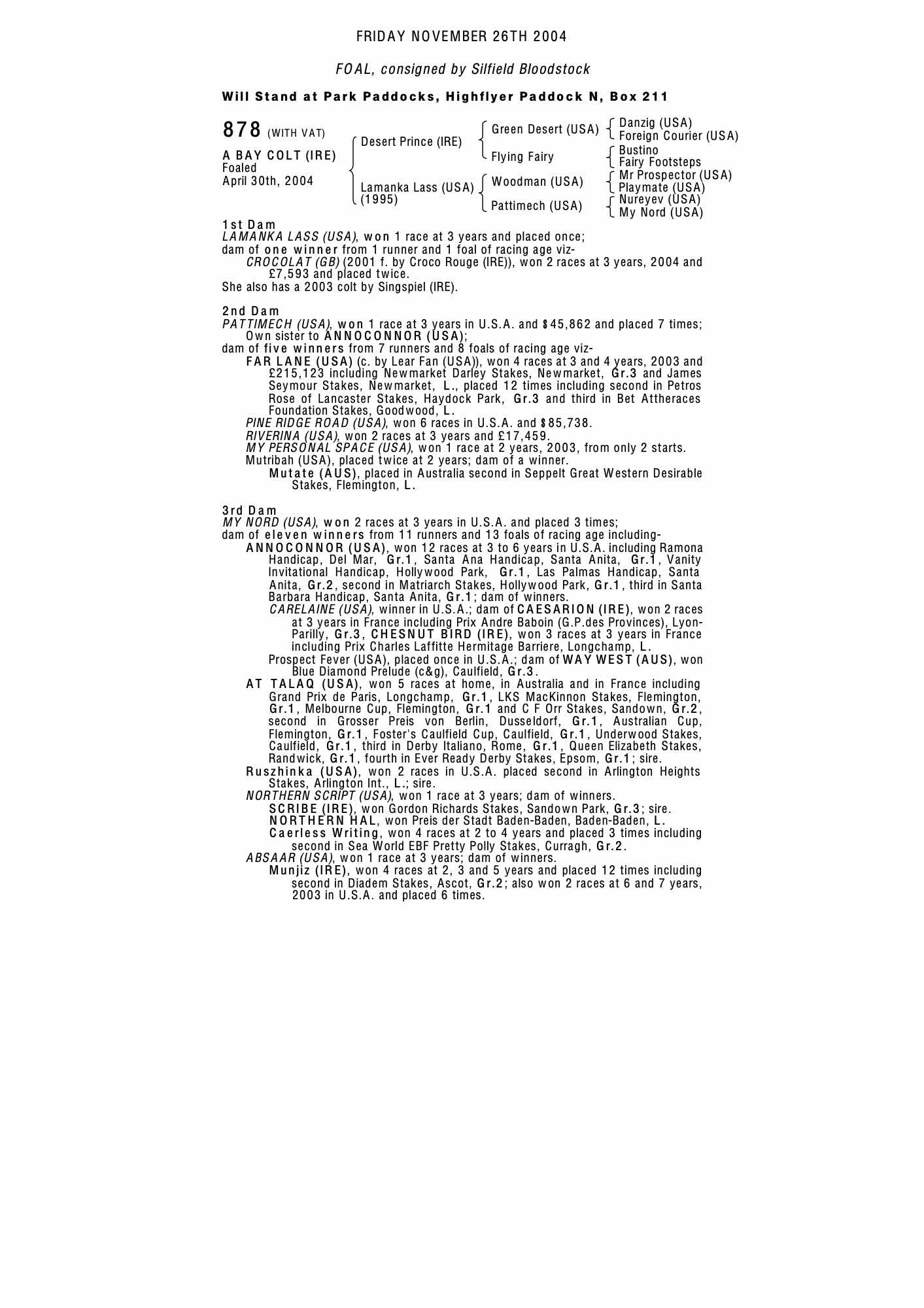 October Yearling Sale, Book 1 2004 lot 132 C. by Singspiel (IRE) 2003, Rathmore Stud, Ireland=>Vendor 26,000 gns