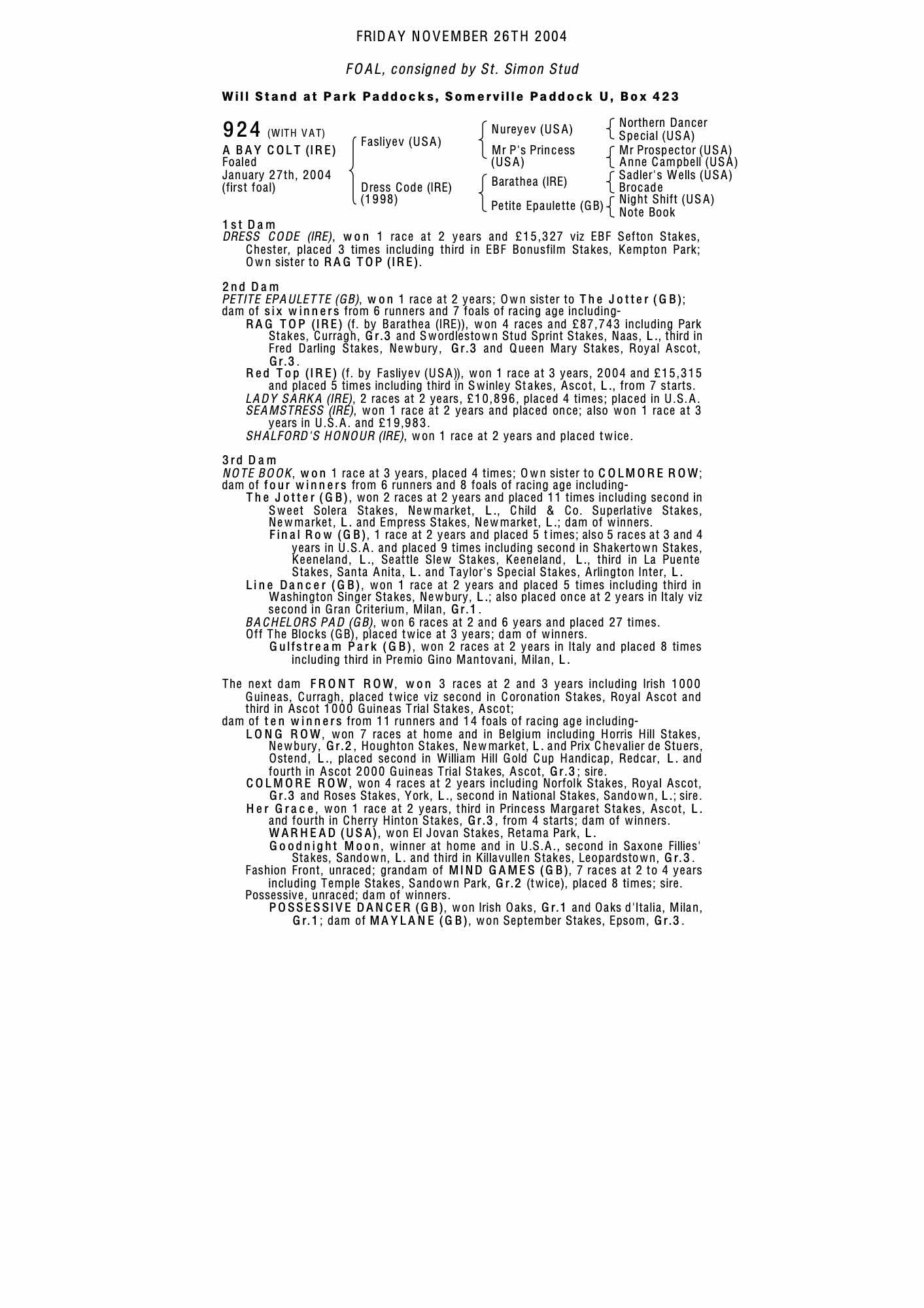 Consignor: St. Simon Stud