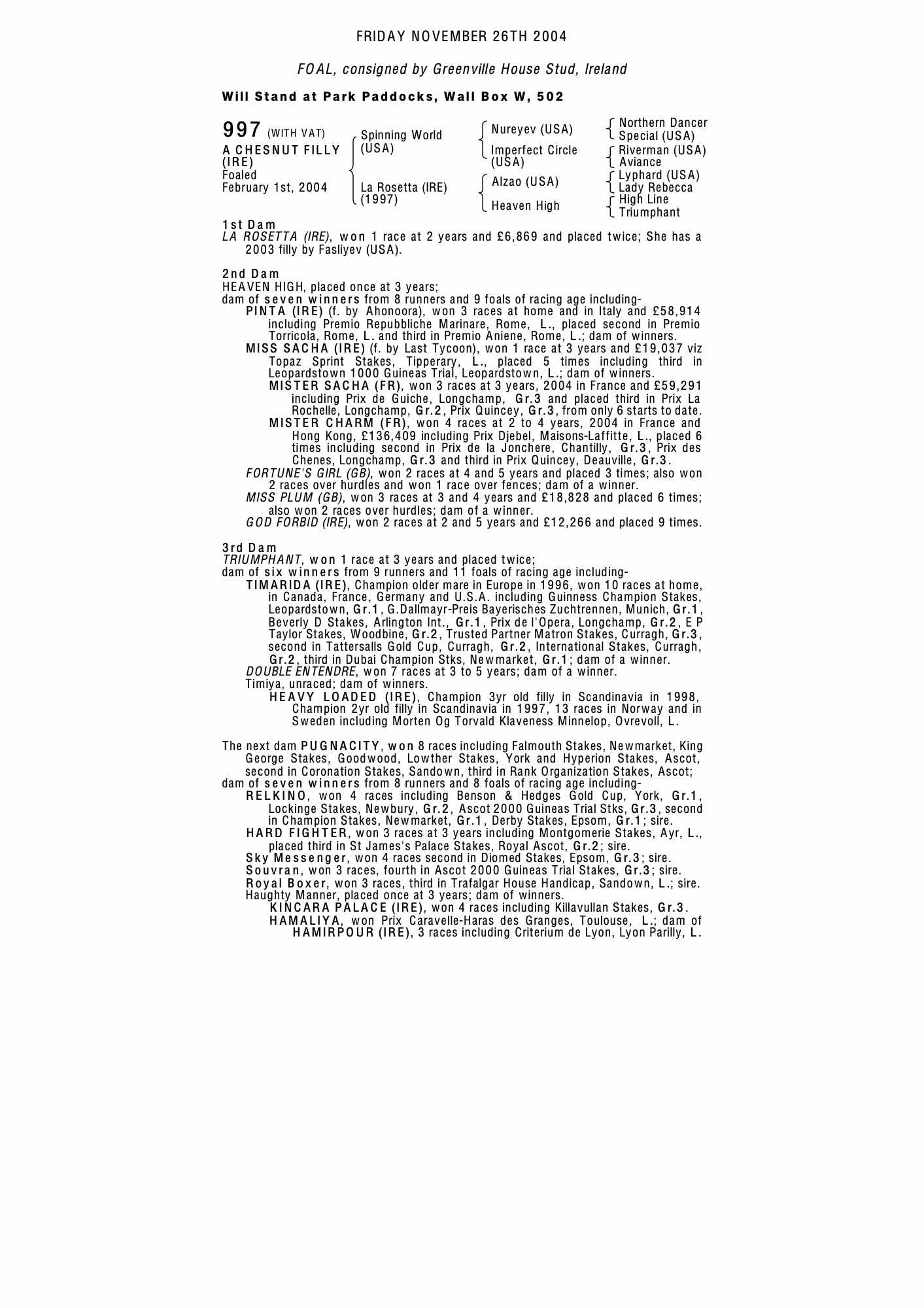 October Yearling Sale, Book 1 2004 lot 502 F. by Fasliyev (USA) 2003, Round Hill Stud, Ireland=>A Skiffington 52,000 gns
