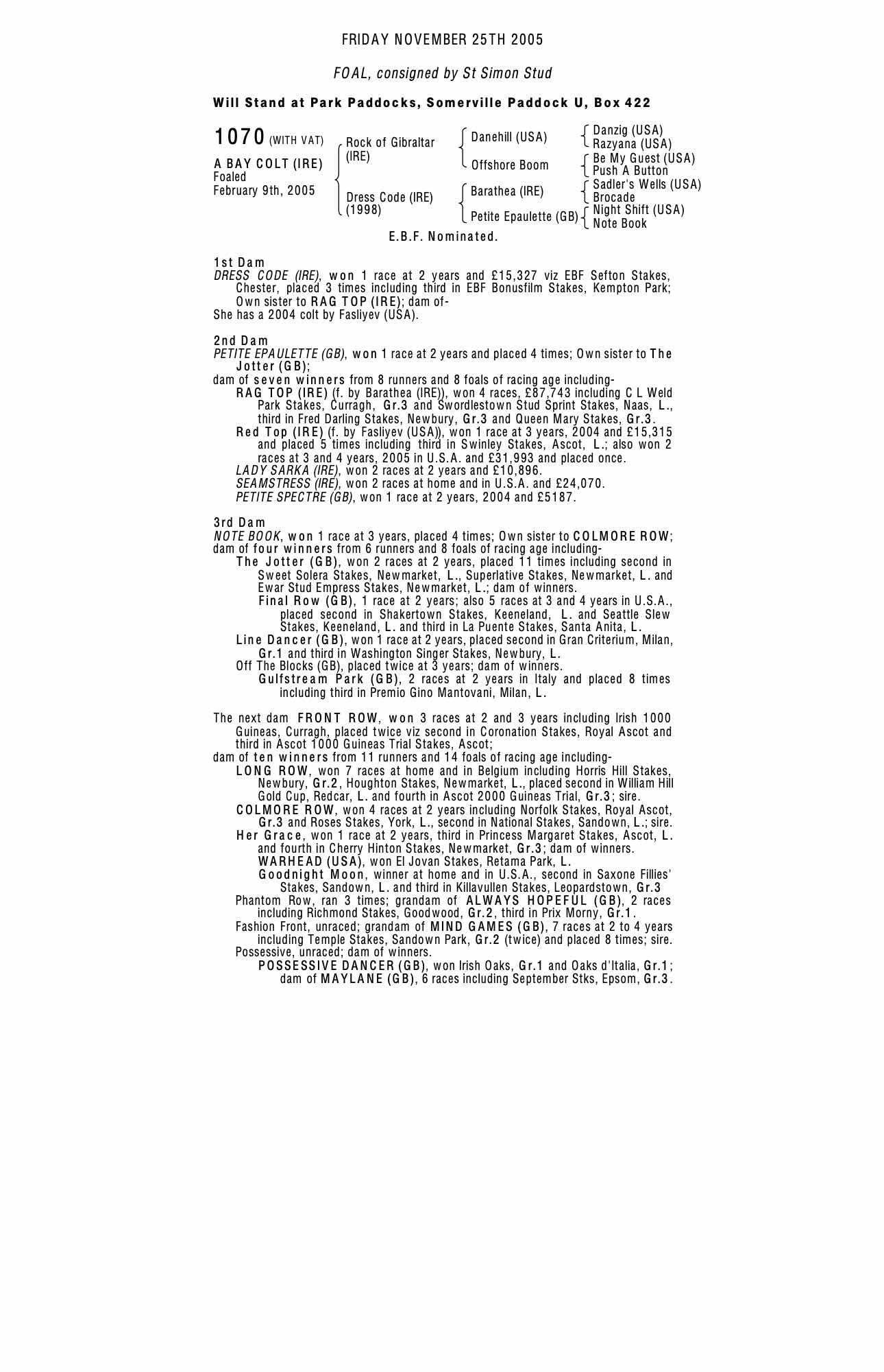 December Foal Sale 2004 lot 924 C. by Fasliyev (USA) 2004, St. Simon Stud=>Vendor 18,000 gns