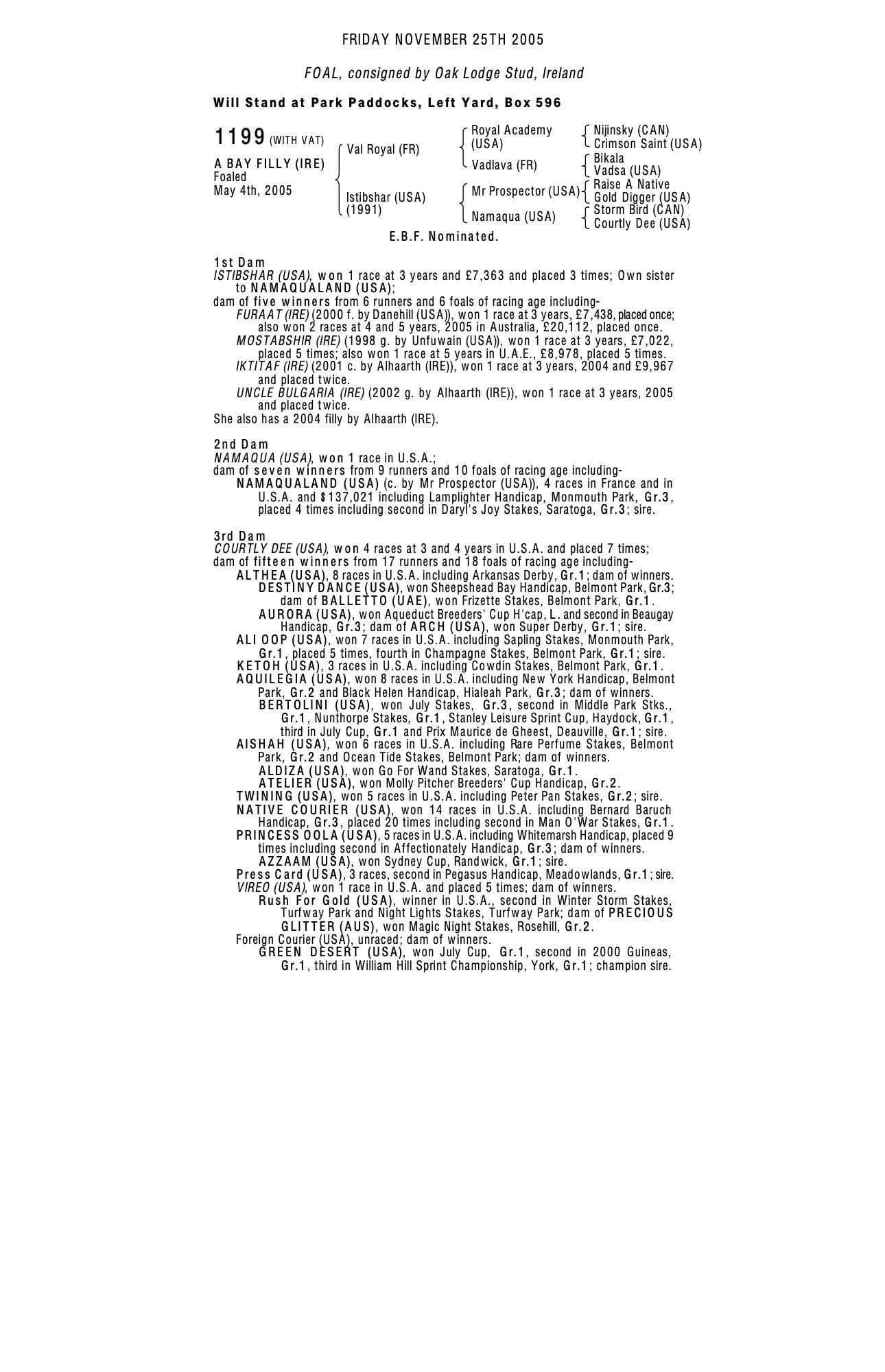 Consignor: Oak Lodge Stud, Ireland