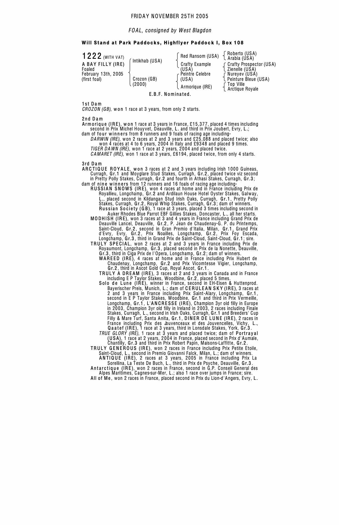 February Sale 2013 lot 241 Crystal Peaks (GB) (F.), Mount House Stables (J. Given)=>Lot Not Sold 14,000 gns