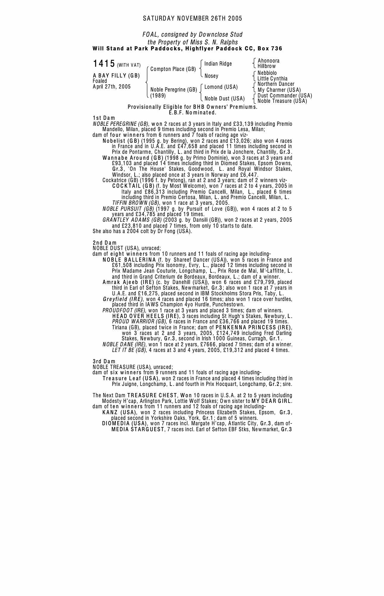 December Mare Sale 2005 lot 1912 Just My Hobby (GB) (M. by Kris), Glebe Stud=>Colin Kennedy 17,000 gns