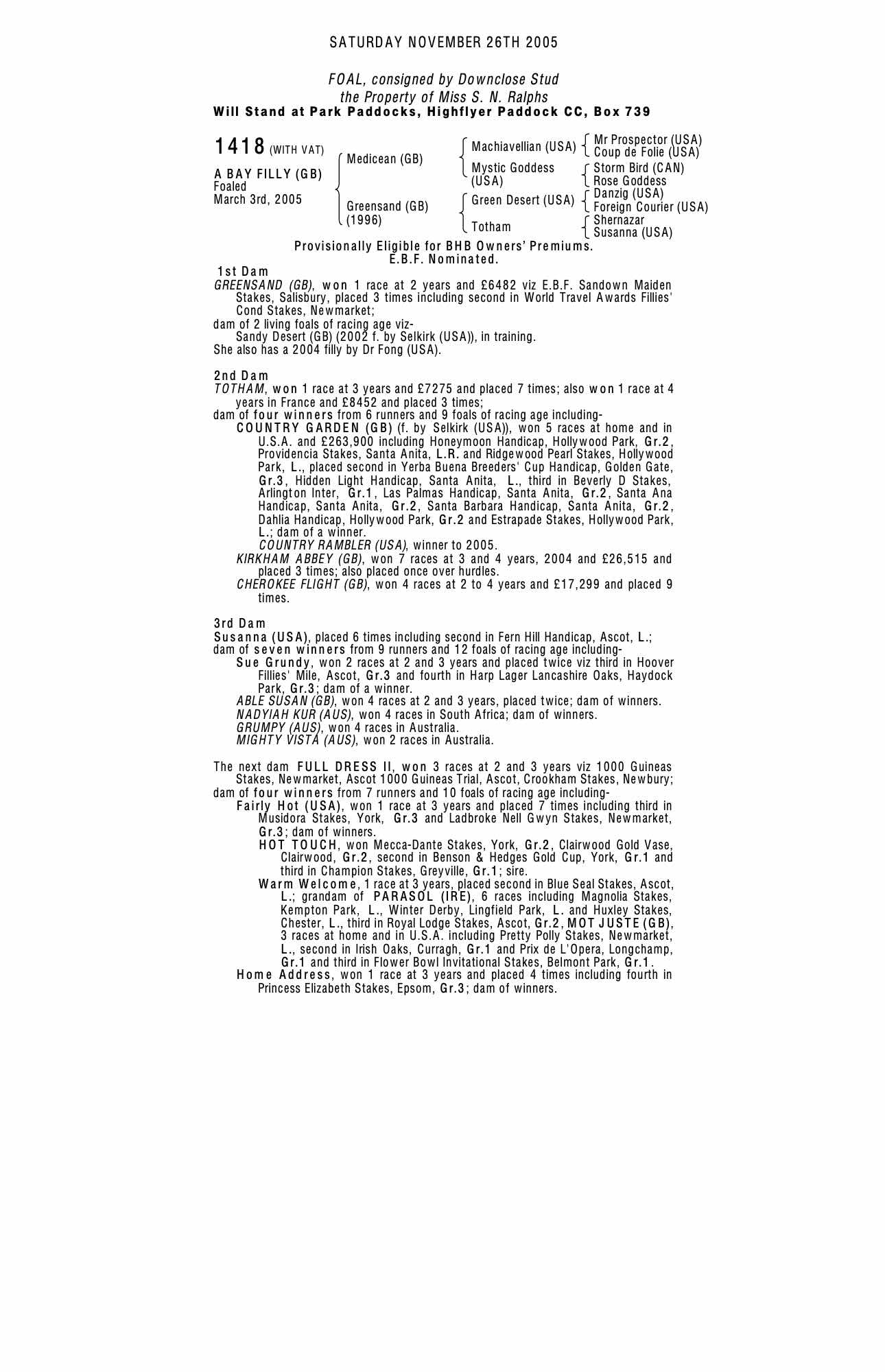 December Foal Sale 2004 lot 1219 F. by Dr Fong (USA) 2004, Downclose Stud=>Mark Windsor 4,500 gns