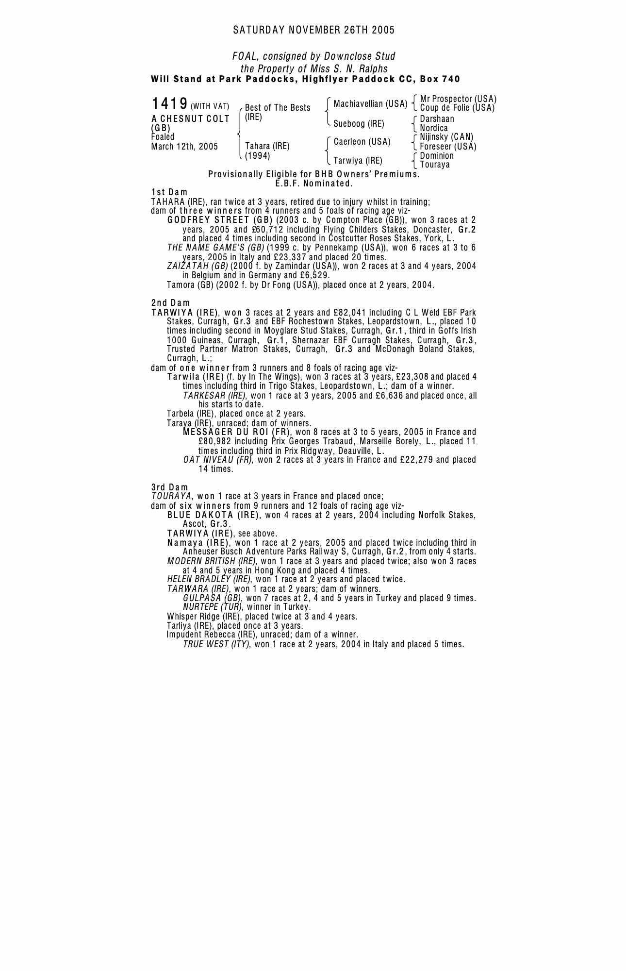 Autumn Horses in Training Sale 2005 lot 204 Godfrey Street (GB) (C. by Compton Place (GB)), East Everleigh Stables=>Lot Not Sold 78,000 gns