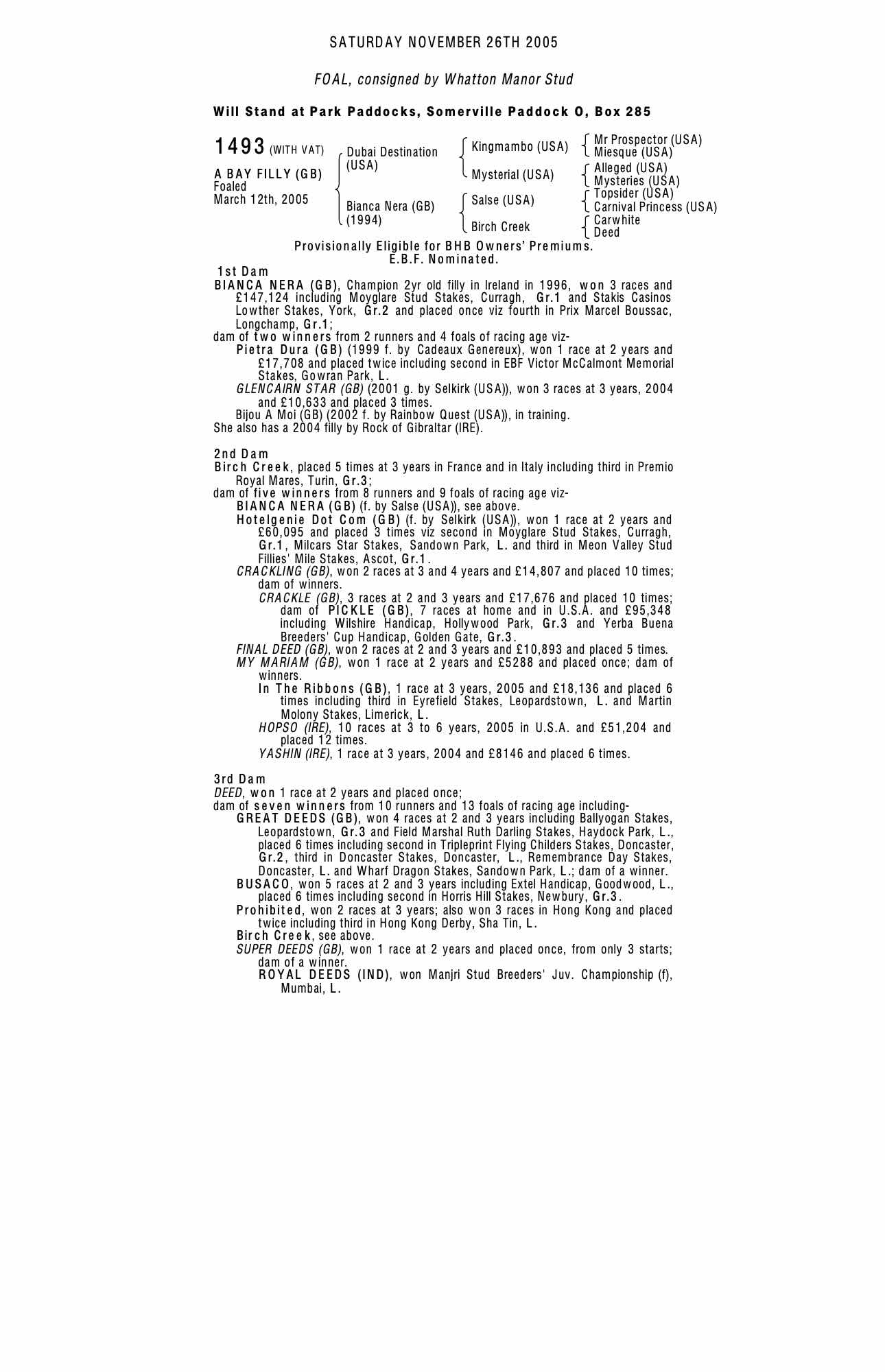 Consignor: Whatton Manor Stud