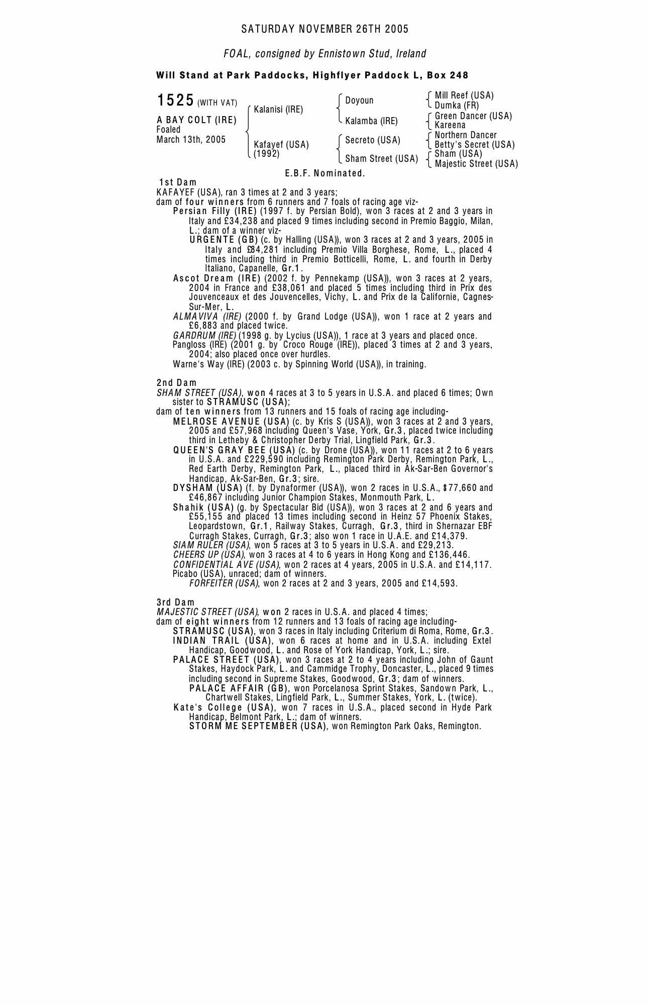 December Foal Sale 2000 lot 1287 F. by Grand Lodge (USA) , Ennistown Stud, Ireland=>Peter Doyle Bloodstock 180,000 gns