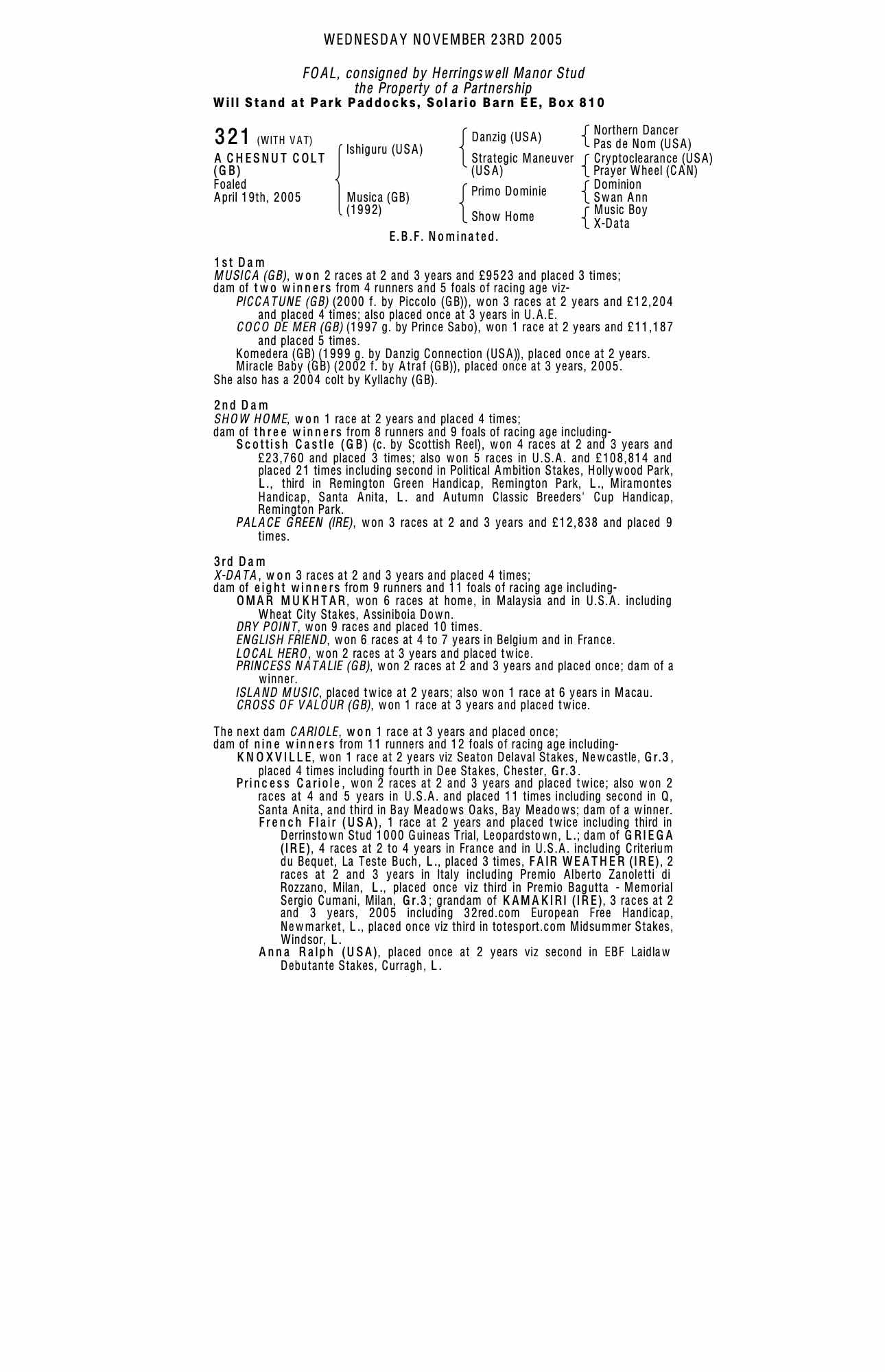 October Yearling Sale, Book 2 2005 lot 1300 C. by Kyllachy (GB) 2004, Herringswell Manor Stud=>Blandford Bloodstock 64,000 gns