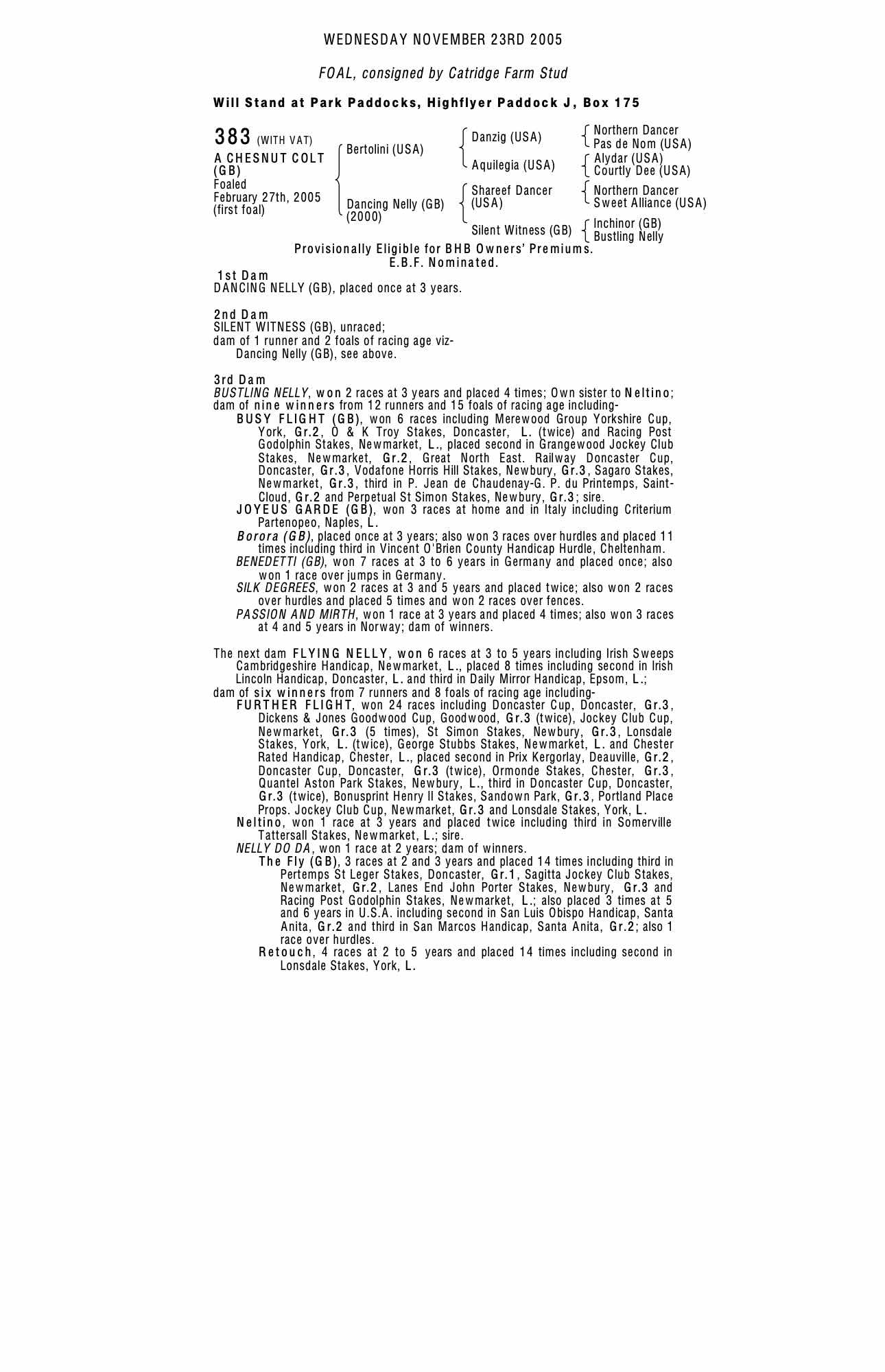 Consignor: Catridge Farm Stud