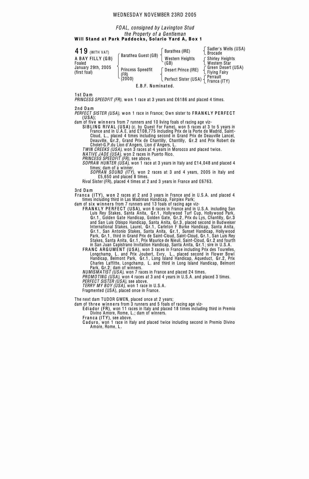 October Yearling Sale, Book 3 2006 lot 1999, Lavington Stud=>Vendor 1,000 gns