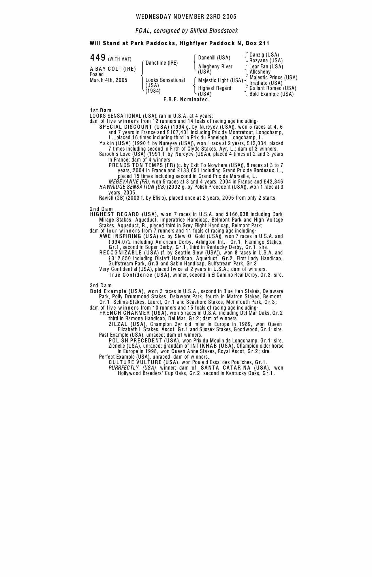 December Foal Sale 2003 lot 788 F. by Efisio 2003, Crandon Park Stud=>Grove Stud 20,000 gns