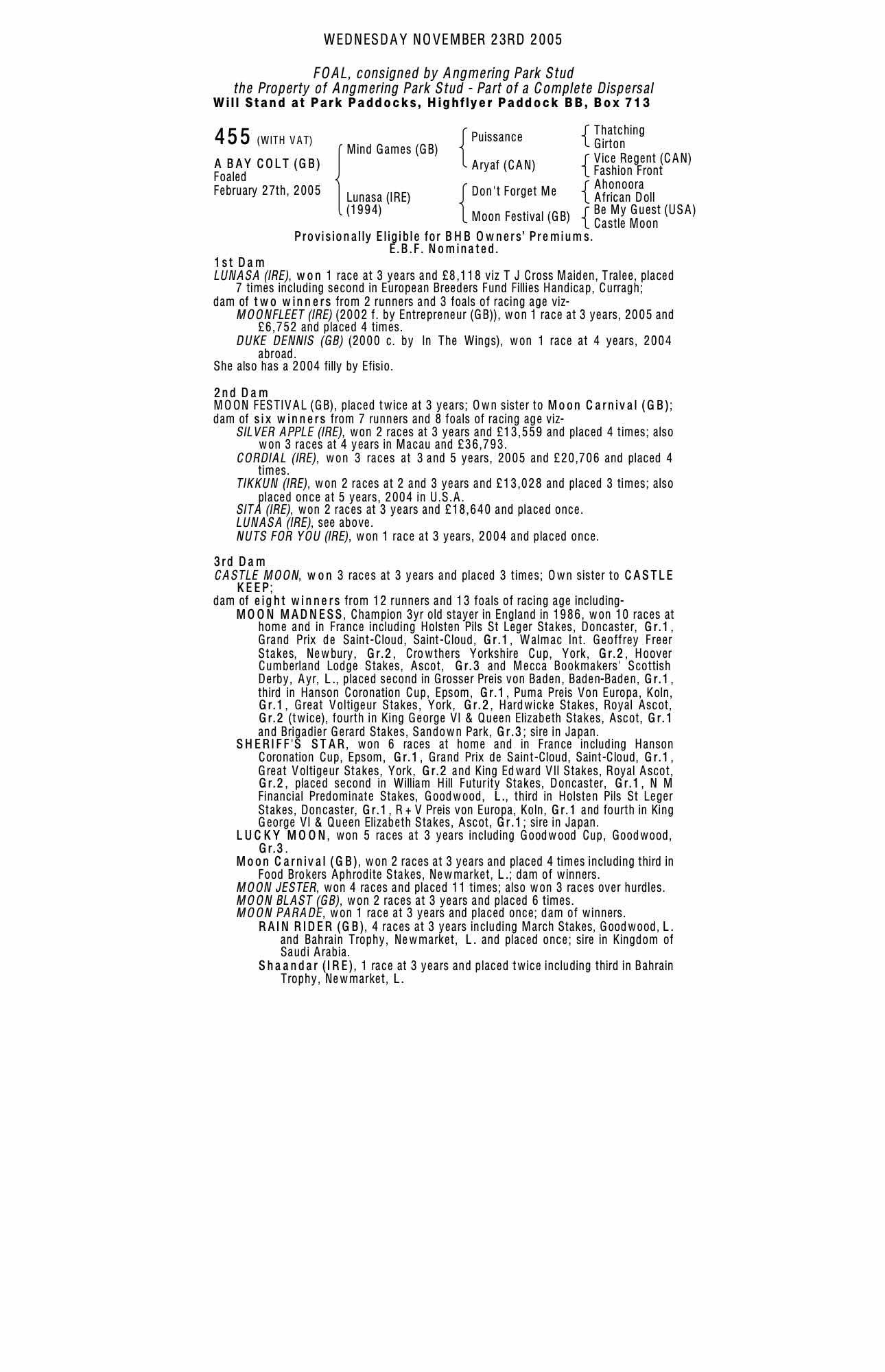 Consignor: Angmering Park Stud