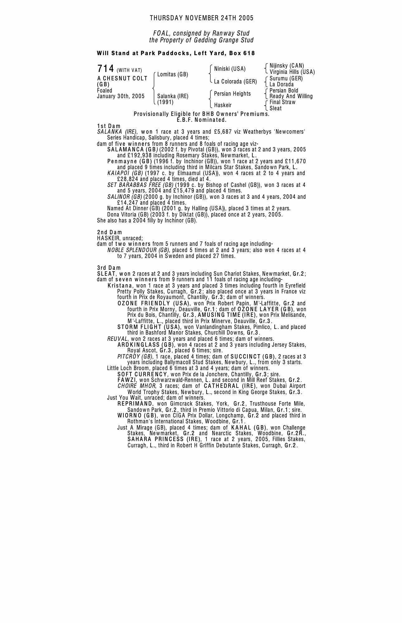 October Yearling Sale, Book 1 2006 lot 454, Yeomanstown Stud, Ireland=>Willie McKay 90,000 gns