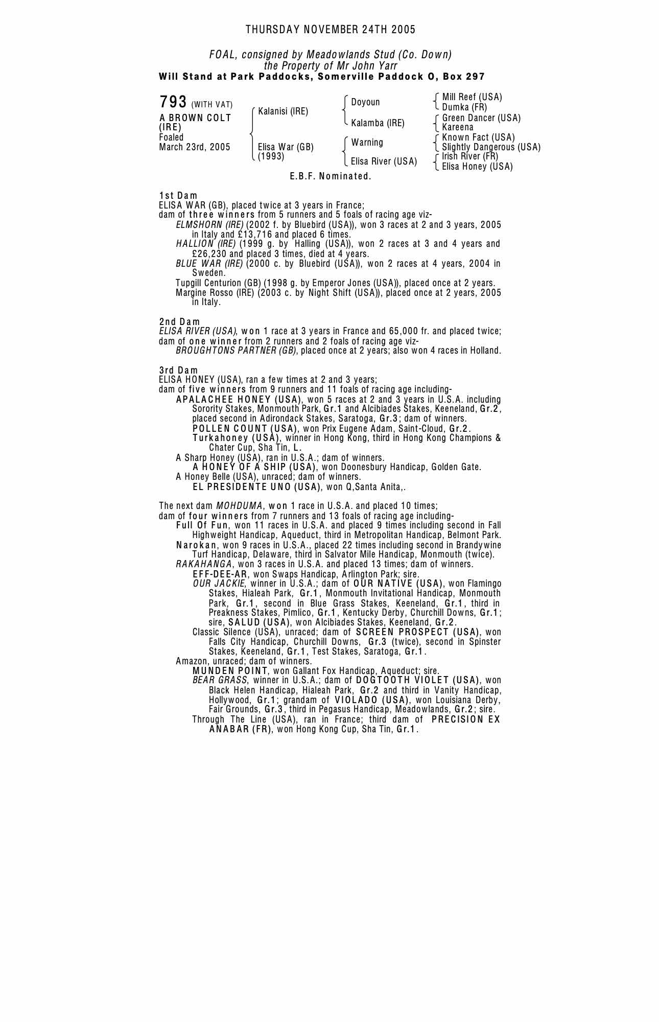 Consignor: Meadowlands Stud (Co. Down)