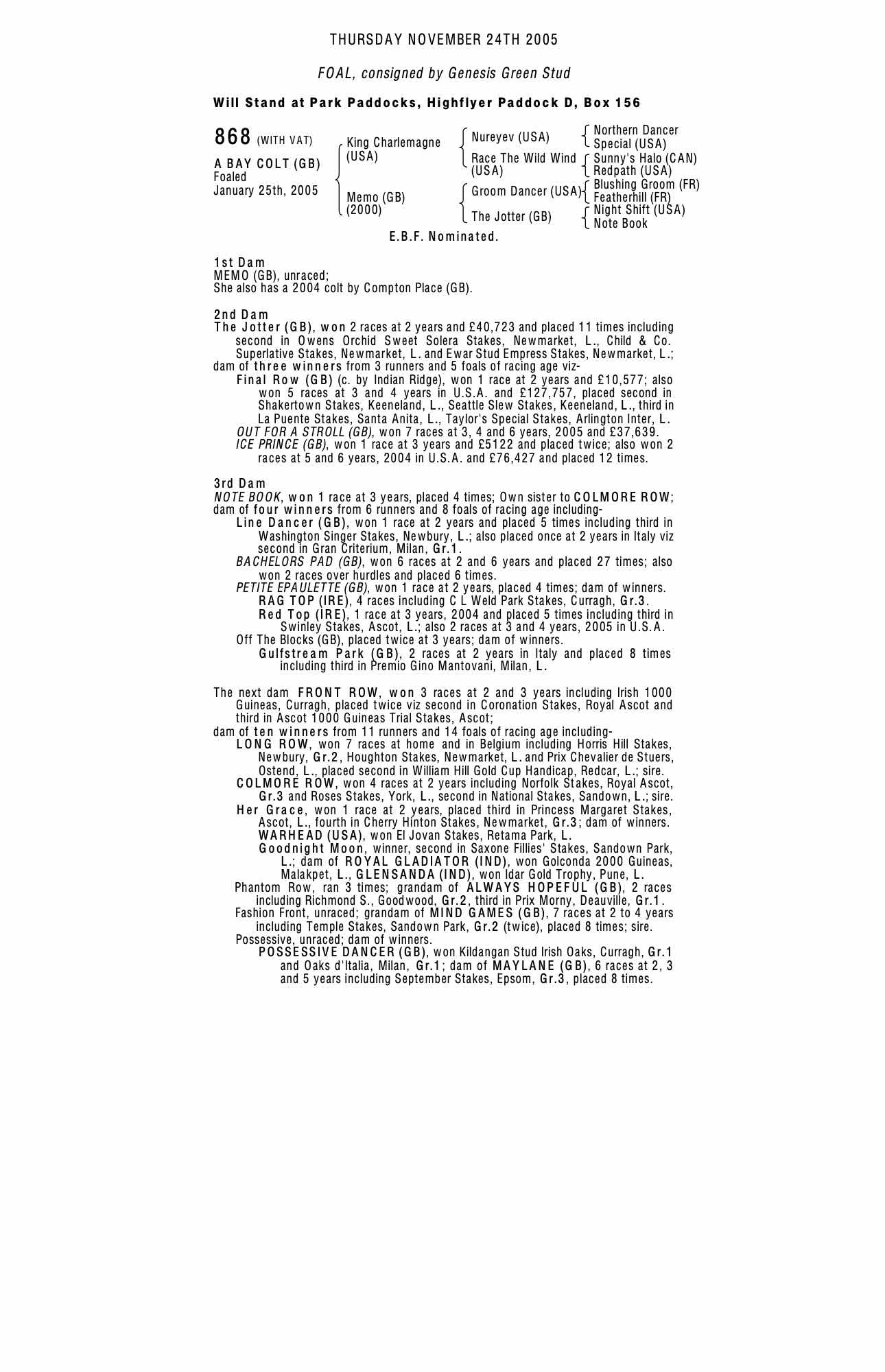 December Foal Sale 2004 lot 1072 C. by Compton Place (GB) 2004, Genesis Green Stud=>Whitsbury Manor Stud 25,000 gns