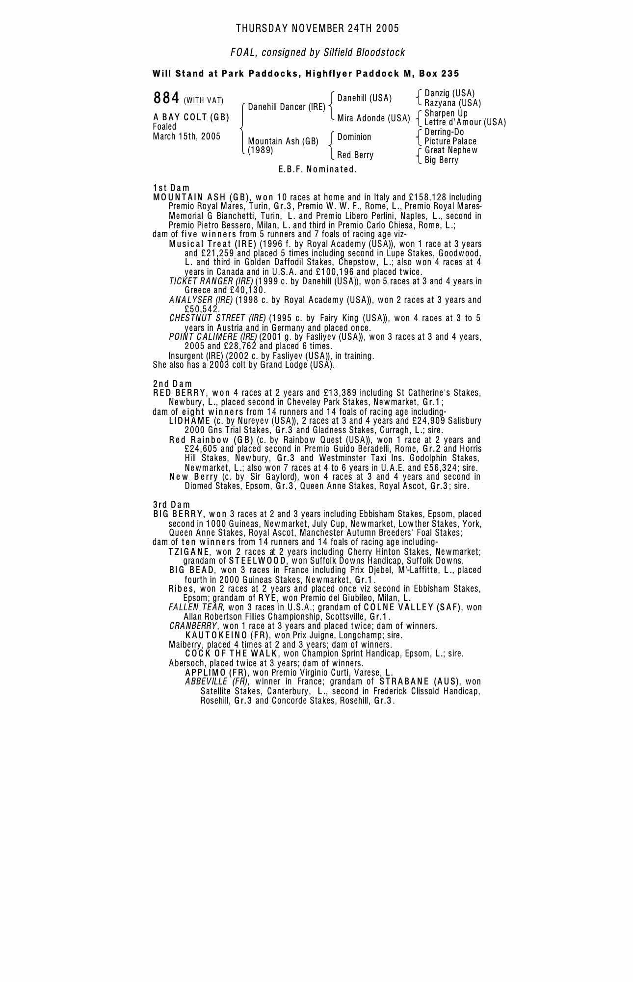October Yearling Sale, Book 1 2006 lot 330, Rathbarry Stud, Ireland (Agent)=>Anthony Stroud Bloodstock 75,000 gns
