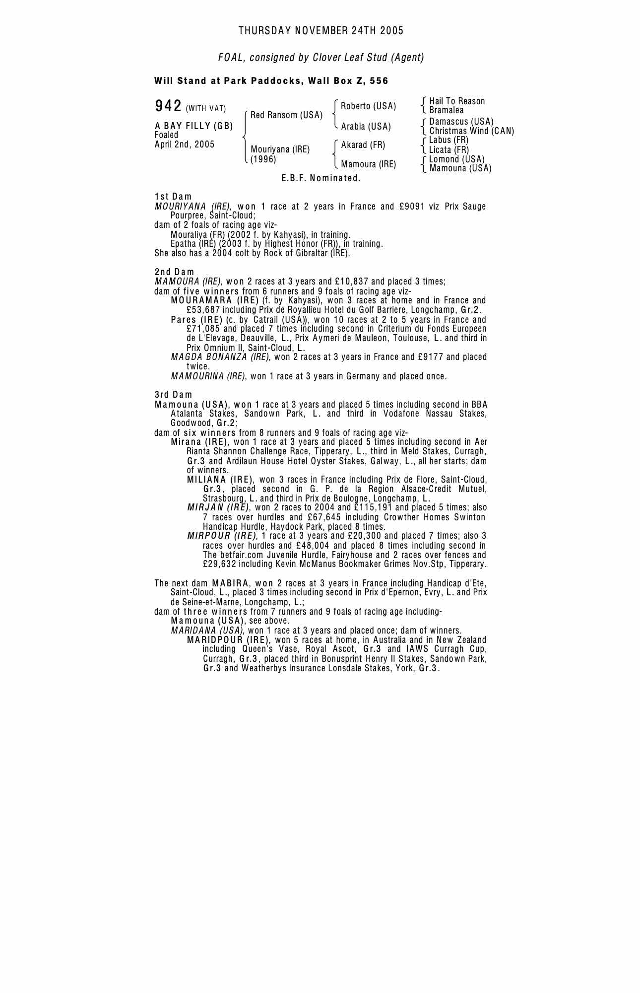 October Yearling Sale, Book 2 2006 lot 802, Clover Leaf Stud=>Agence FIPS 75,000 gns