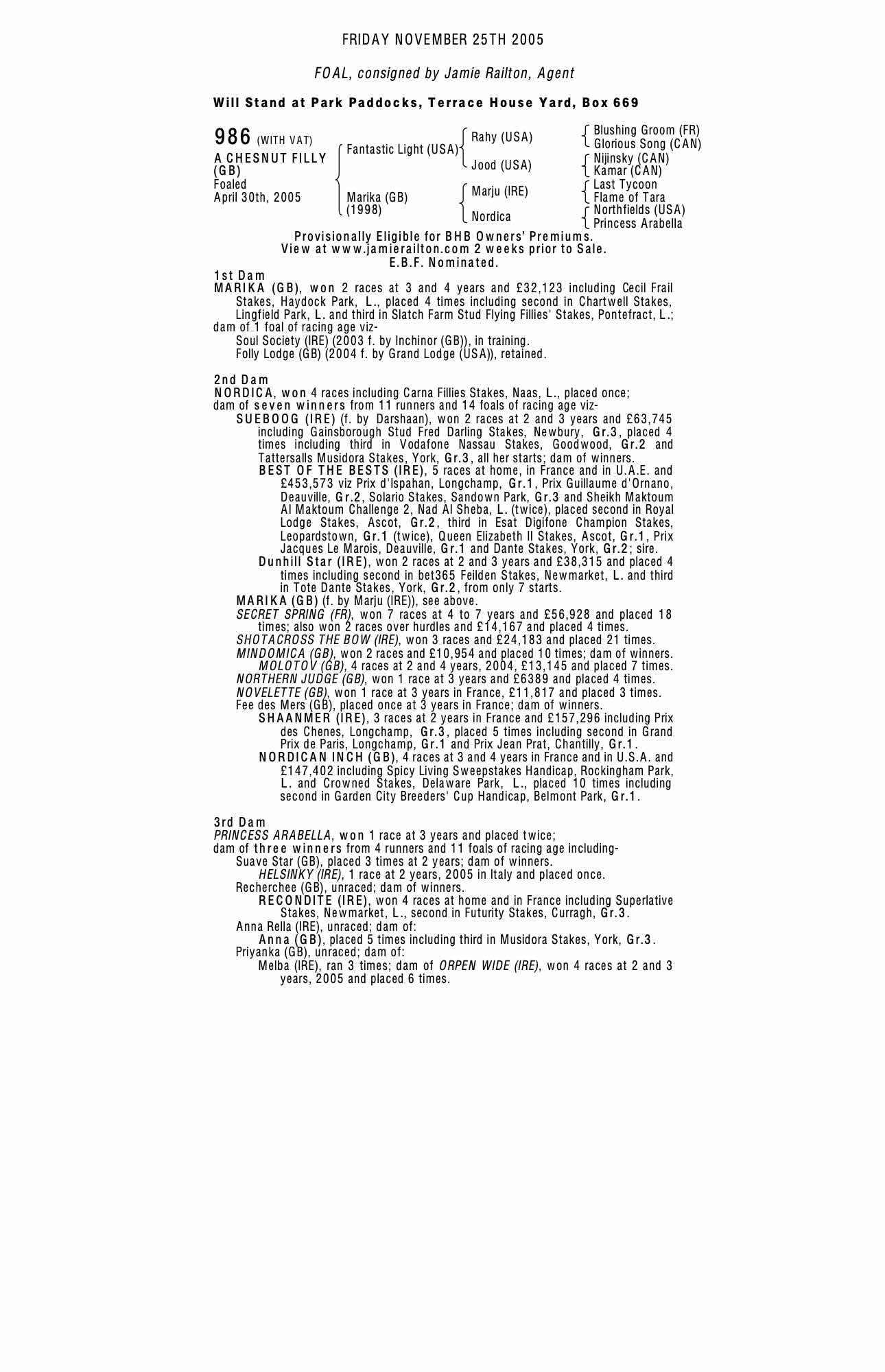 October Yearling Sale, Book 1 2004 lot 761 F. by Inchinor (GB) 2003, Jamie Railton, Agent=>Anthony Stroud Bloodstock 30,000 gns